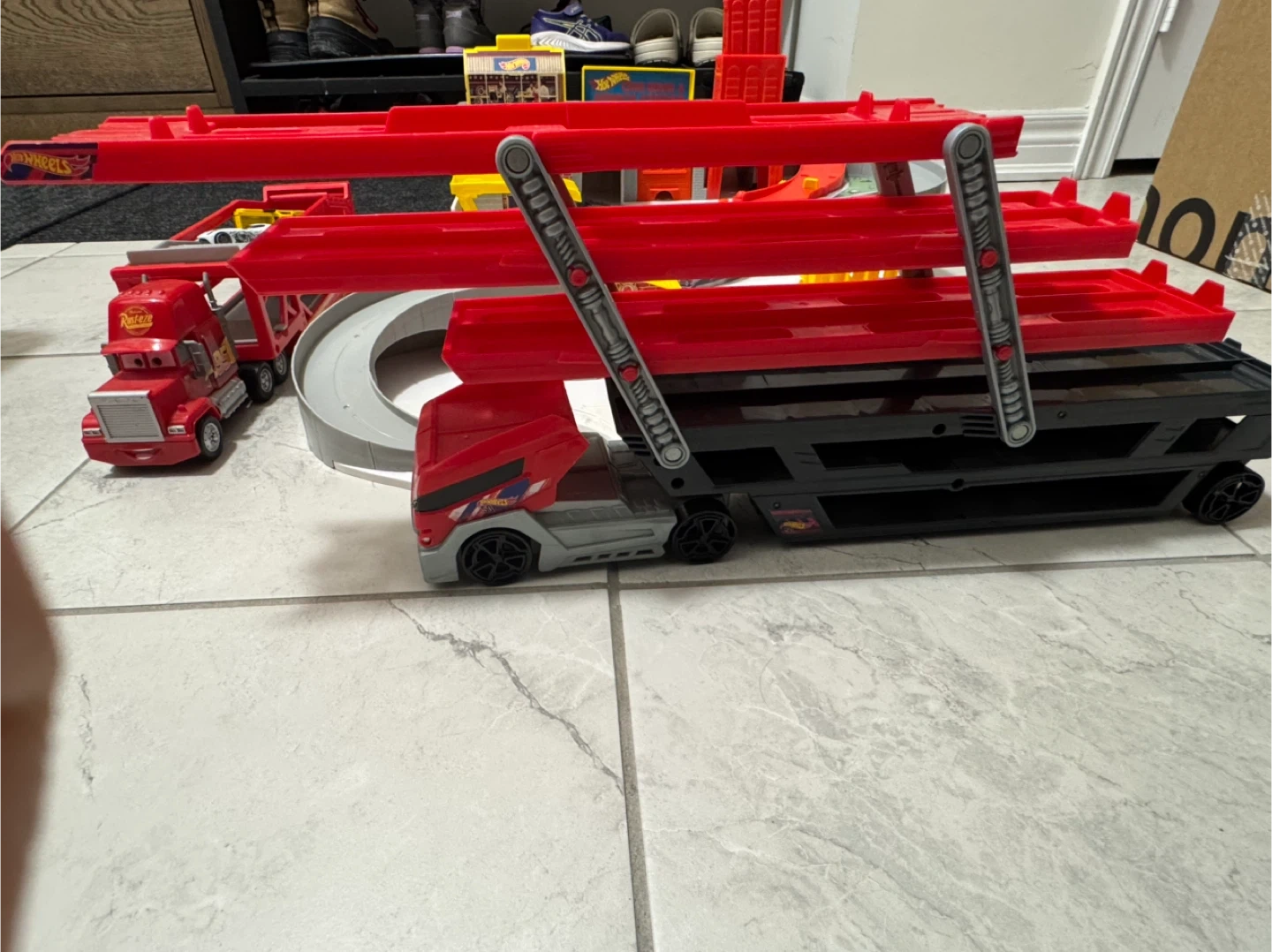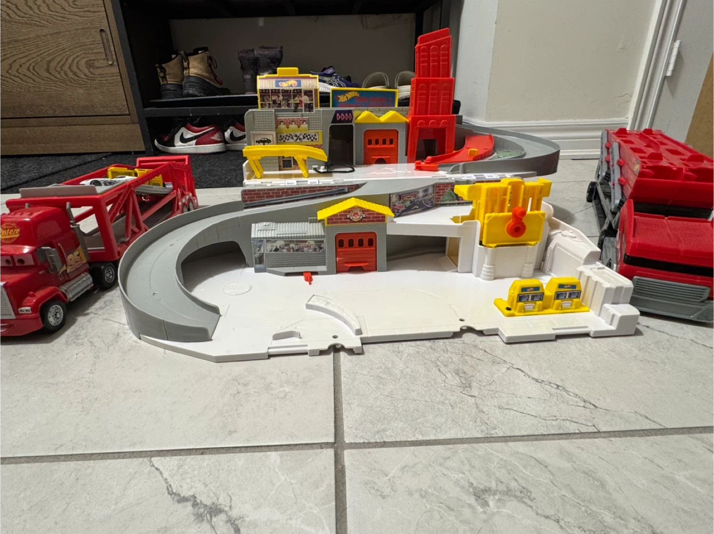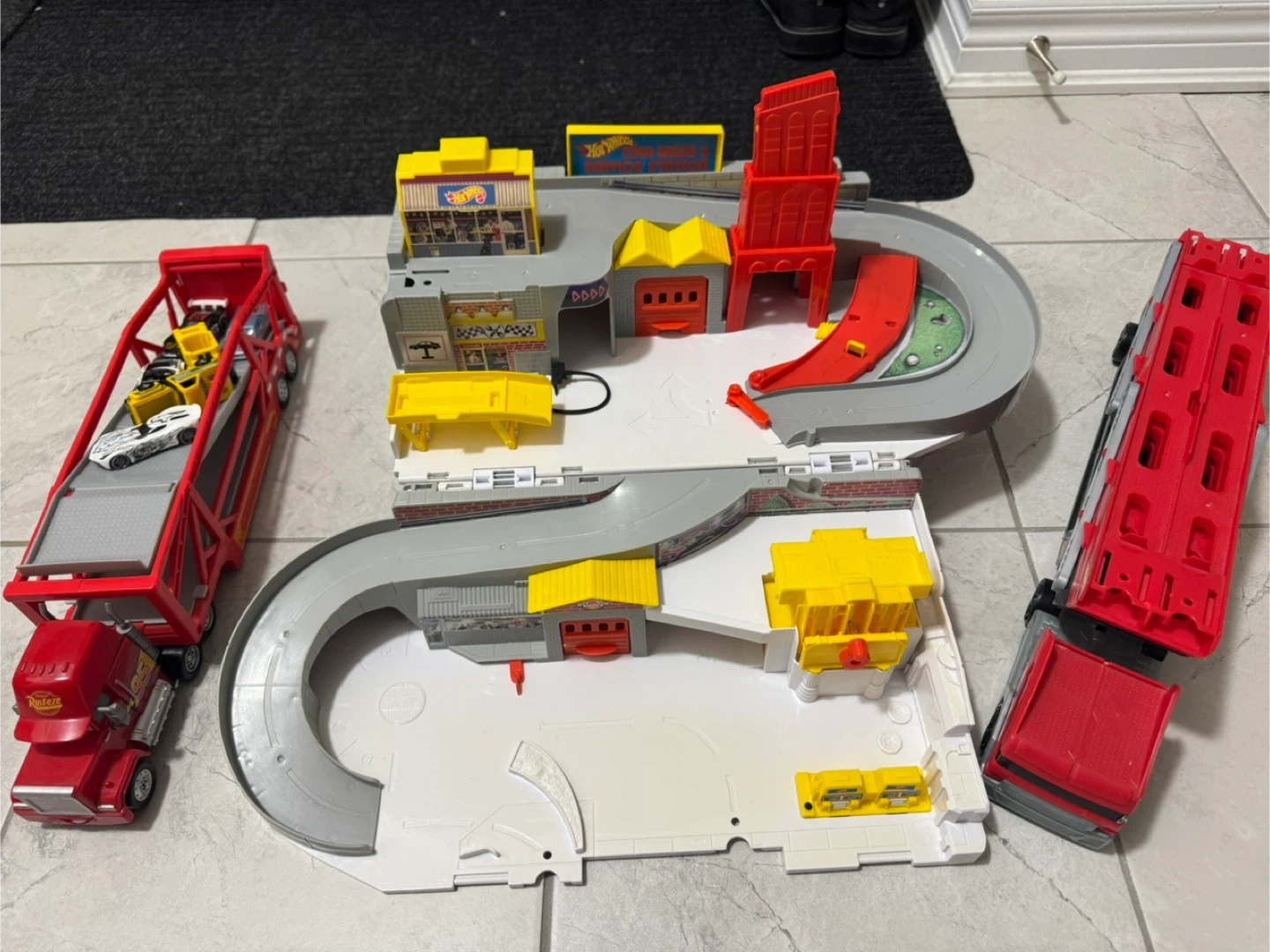 Hot wheels car wash and service case and mega haulers