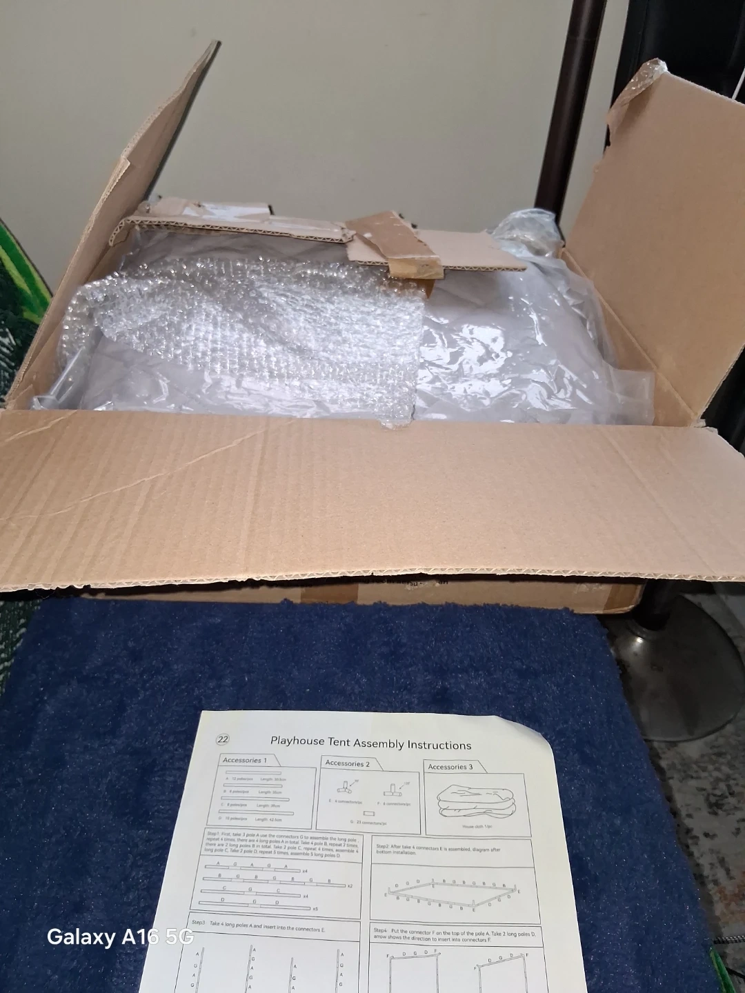This is a Razee brand kids play tent. It's a grey cottage design. Assembly instructions and parts are included. Perfect for imaginative play indoors!