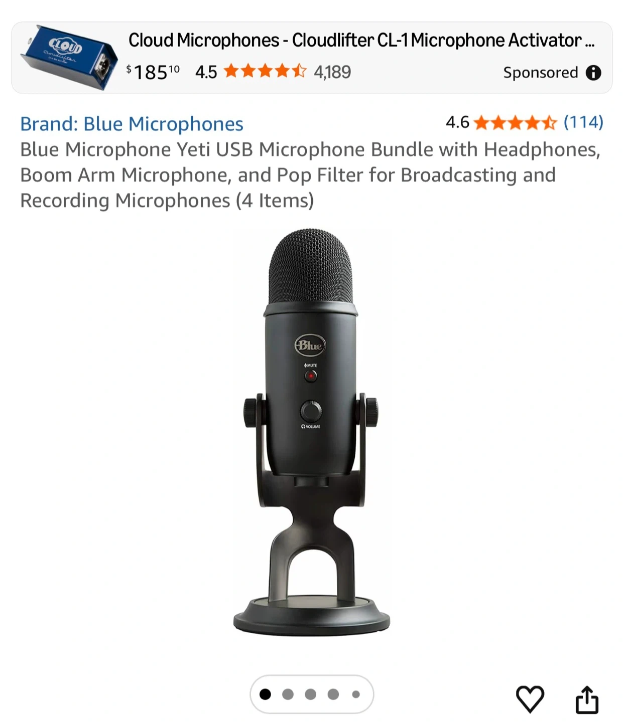 Buy & SellBlue Yeti USB MicrophoneBlue Yeti USB Microphone$200This is a Blue Yeti USB microphone in grey. It's a versatile microphone for broadcasting and recording. Includes desktop stand.ConditionNewBrandBlueWHERE TO MEETSt Claire’s West subwayView MapSELLERverifiedAvijitForest Hill S17511 reviews0 chats·1 favorites·4 viewsSEND CHAT TO SELLERHi Avijit! I’m interested in your listing.Hi Avijit! I’m interested in your listing.Get the Karrot app to chatSign In to chat