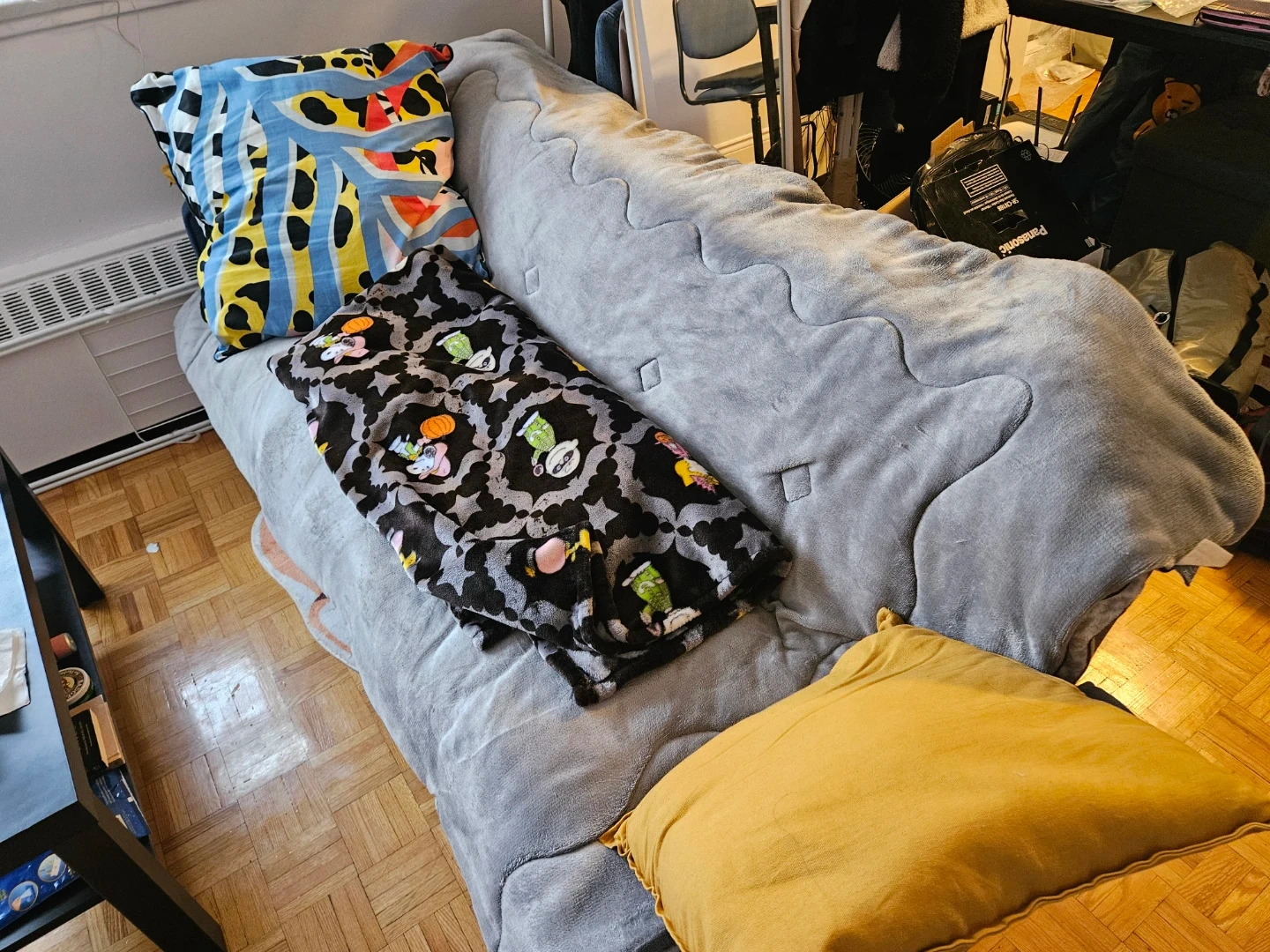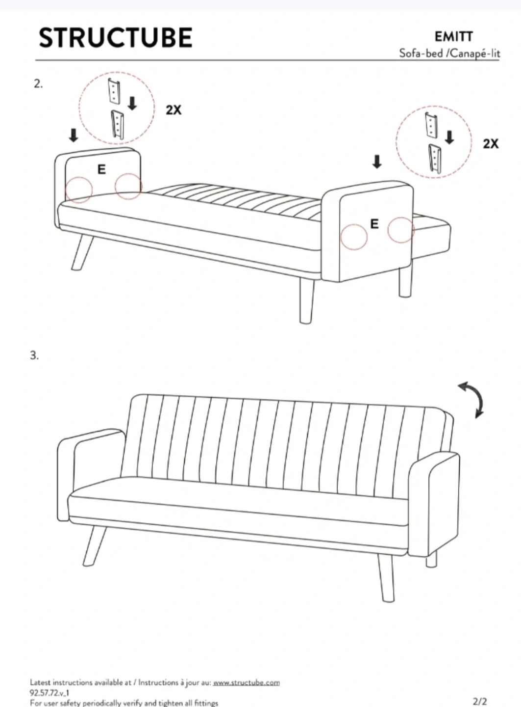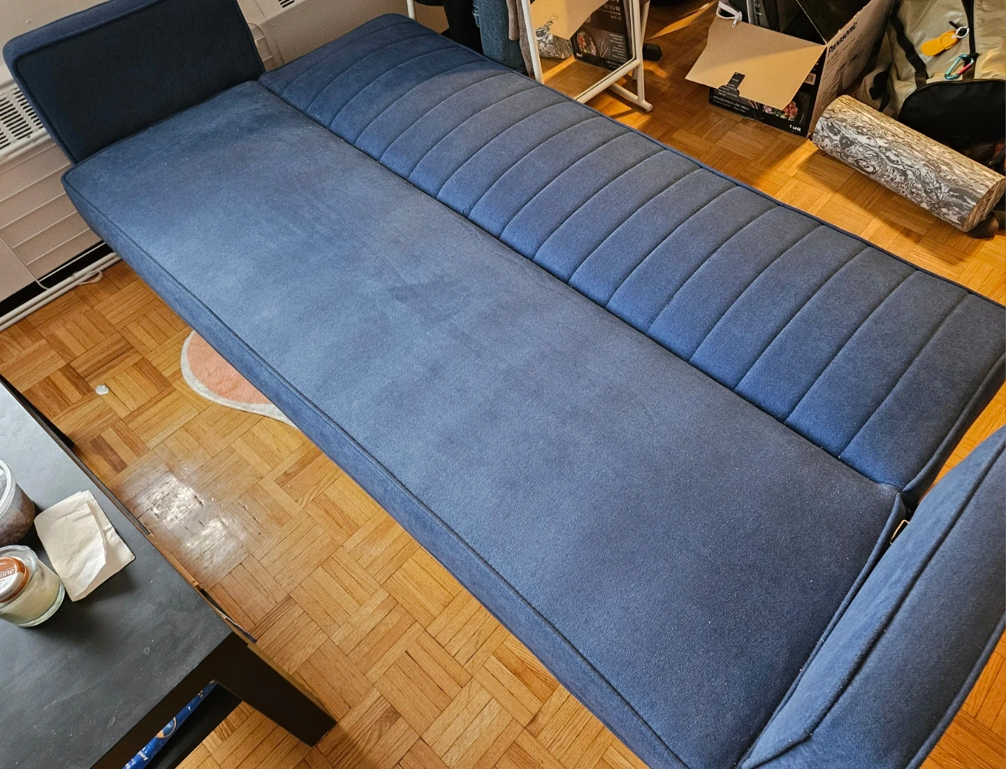 Selling a Structube Emitt sofa bed! It's in great condition and perfect for small spaces. The blue colour is lovely and would look great in any living room or guest room. It easily converts from a sofa to a bed, making it super versatile!