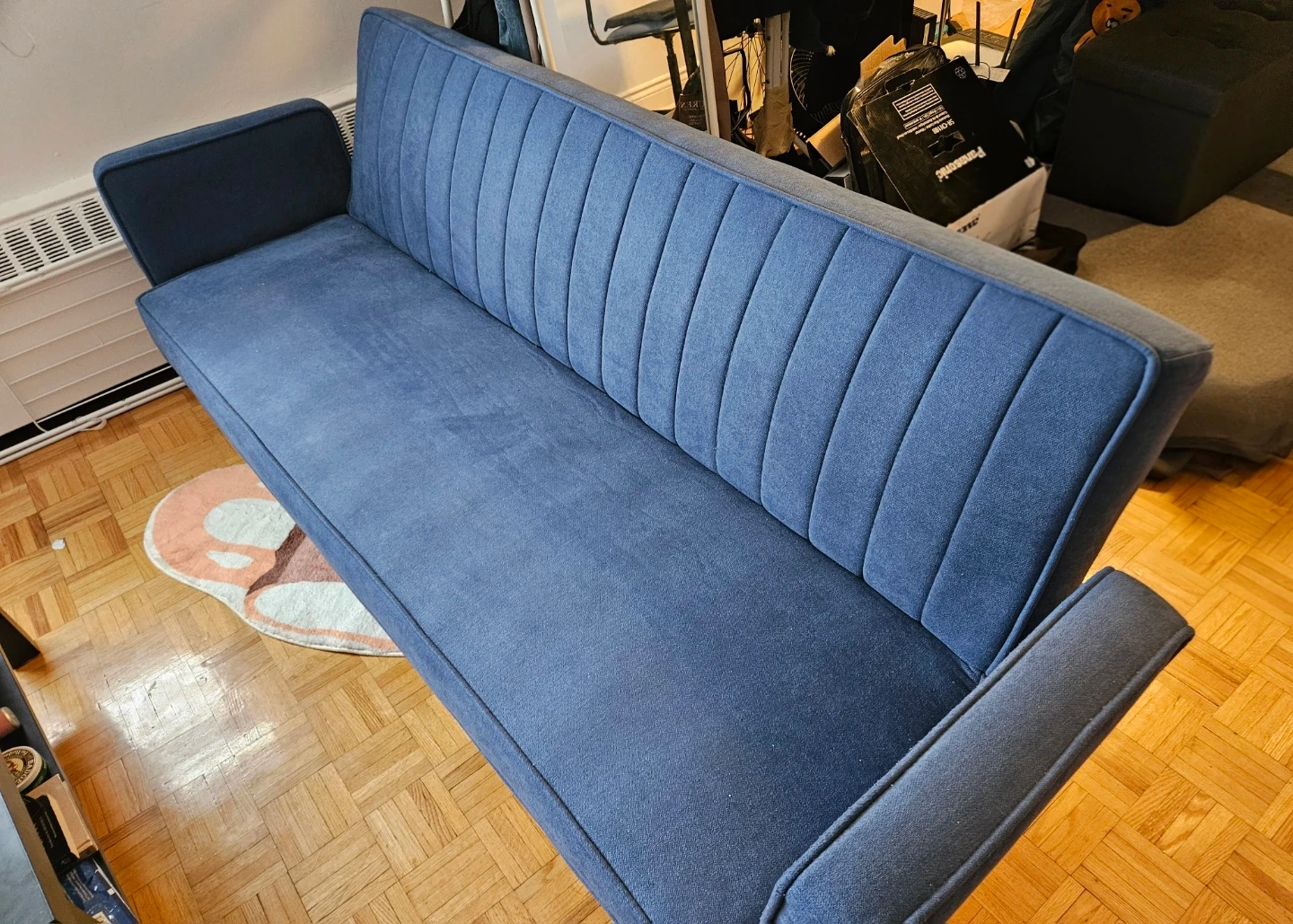 Selling a Structube Emitt sofa bed! It's in great condition and perfect for small spaces. The blue colour is lovely and would look great in any living room or guest room. It easily converts from a sofa to a bed, making it super versatile!
