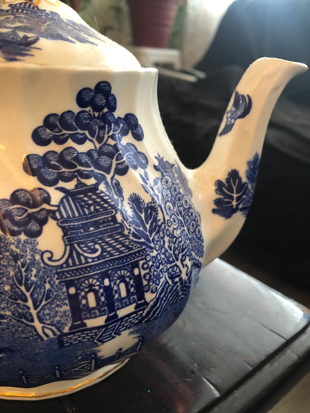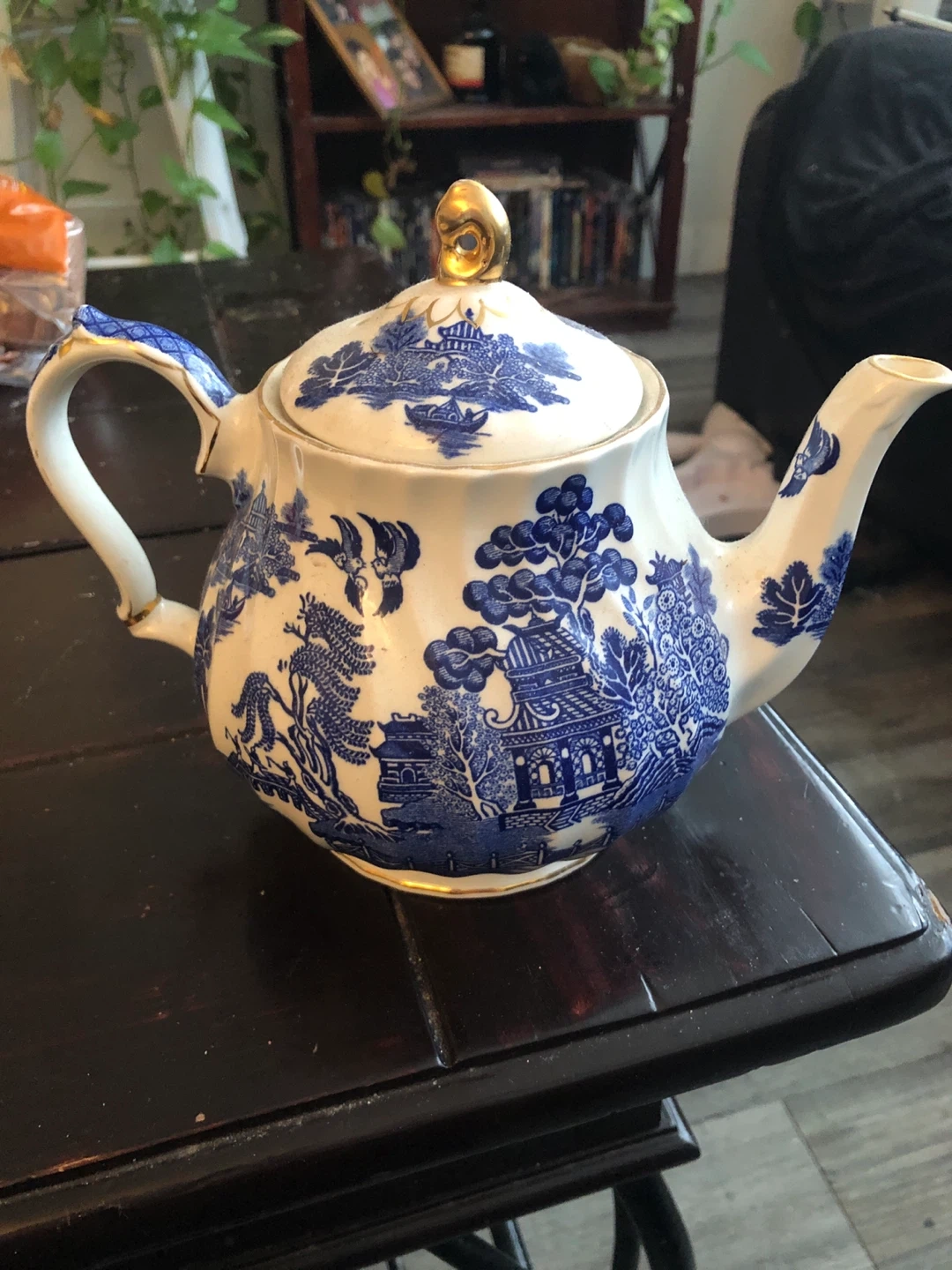 Buy & SellBlue Willow Pattern TeapotBlue Willow Pattern Teapot$10This is a ceramic teapot with a classic blue Willow pattern. It features a gold-trimmed lid and handle. Great for serving tea!ConditionLike newWHERE TO MEETCheck LocationView MapSELLERverifiedStacyTam O'Shanter881 review0 chats·1 favorites·20 viewsSEND CHAT TO SELLERHi Stacy! I’m interested in your listing.Hi Stacy! I’m interested in your listing.Get the Karrot app to chatSign In to chat