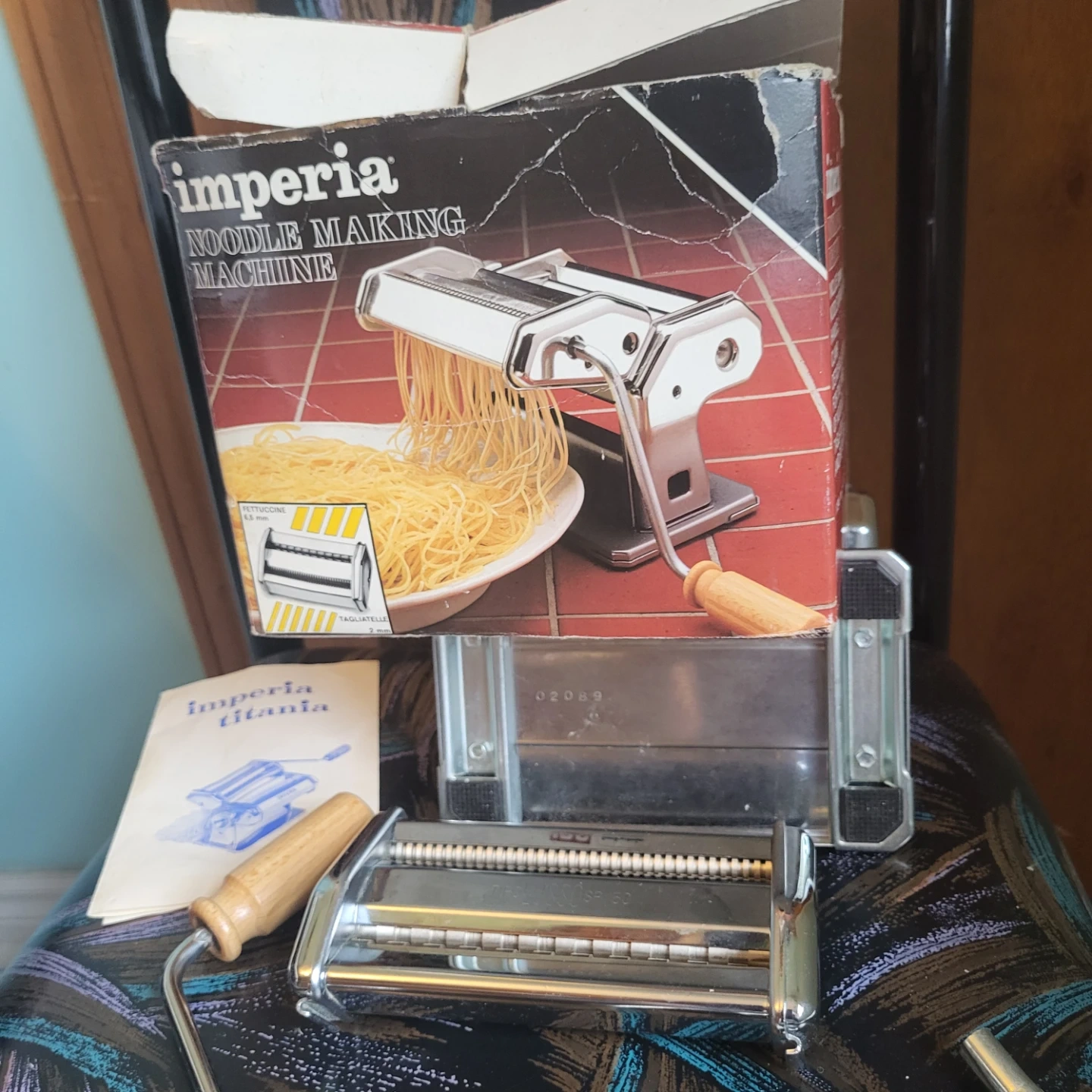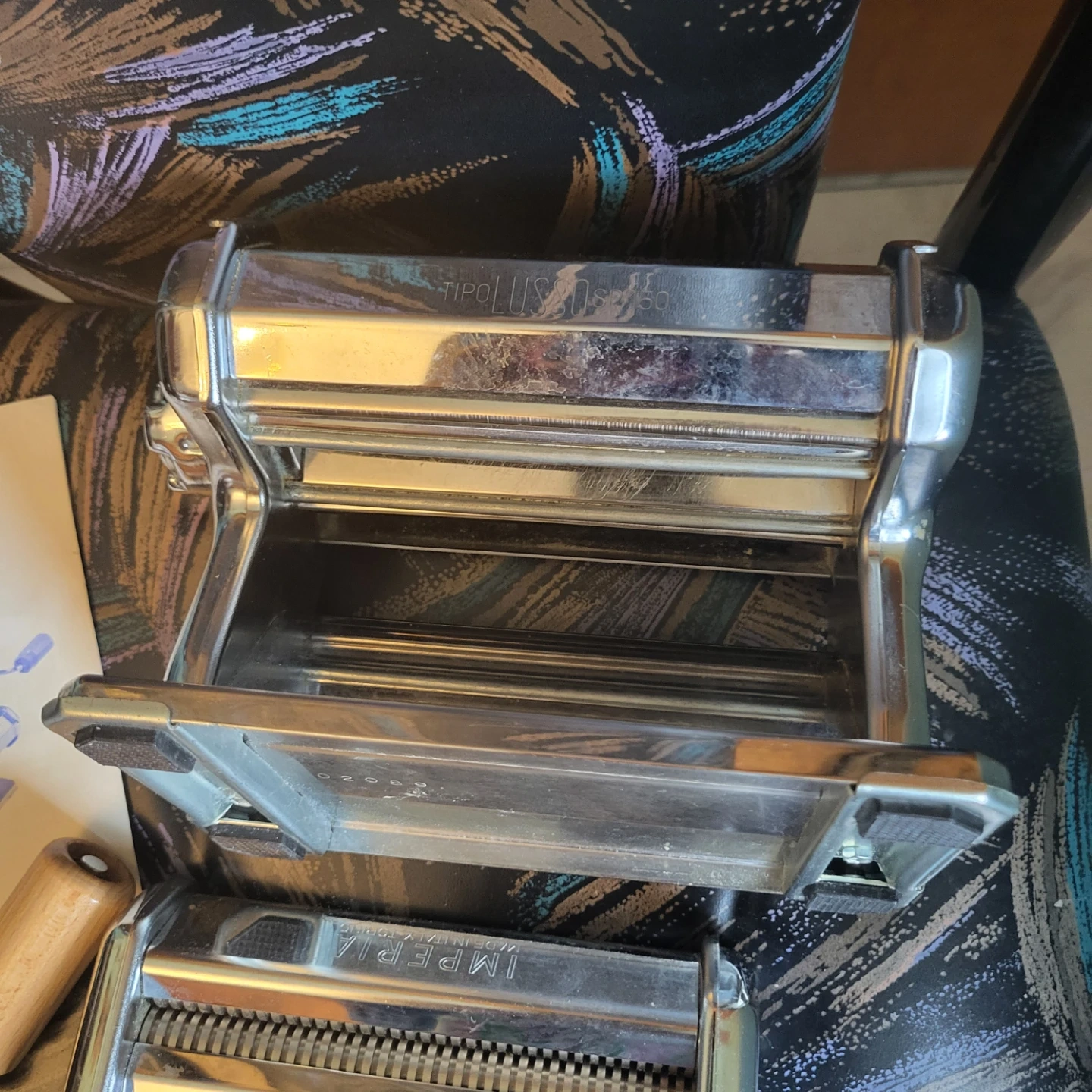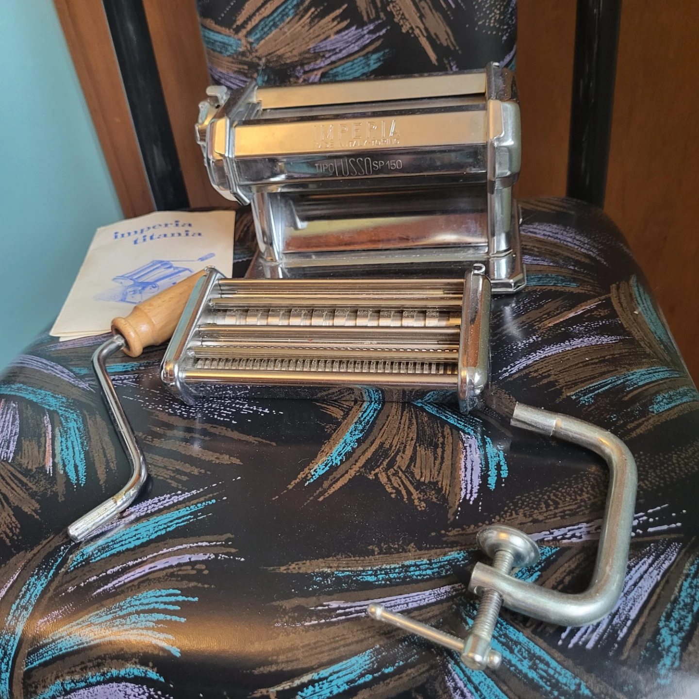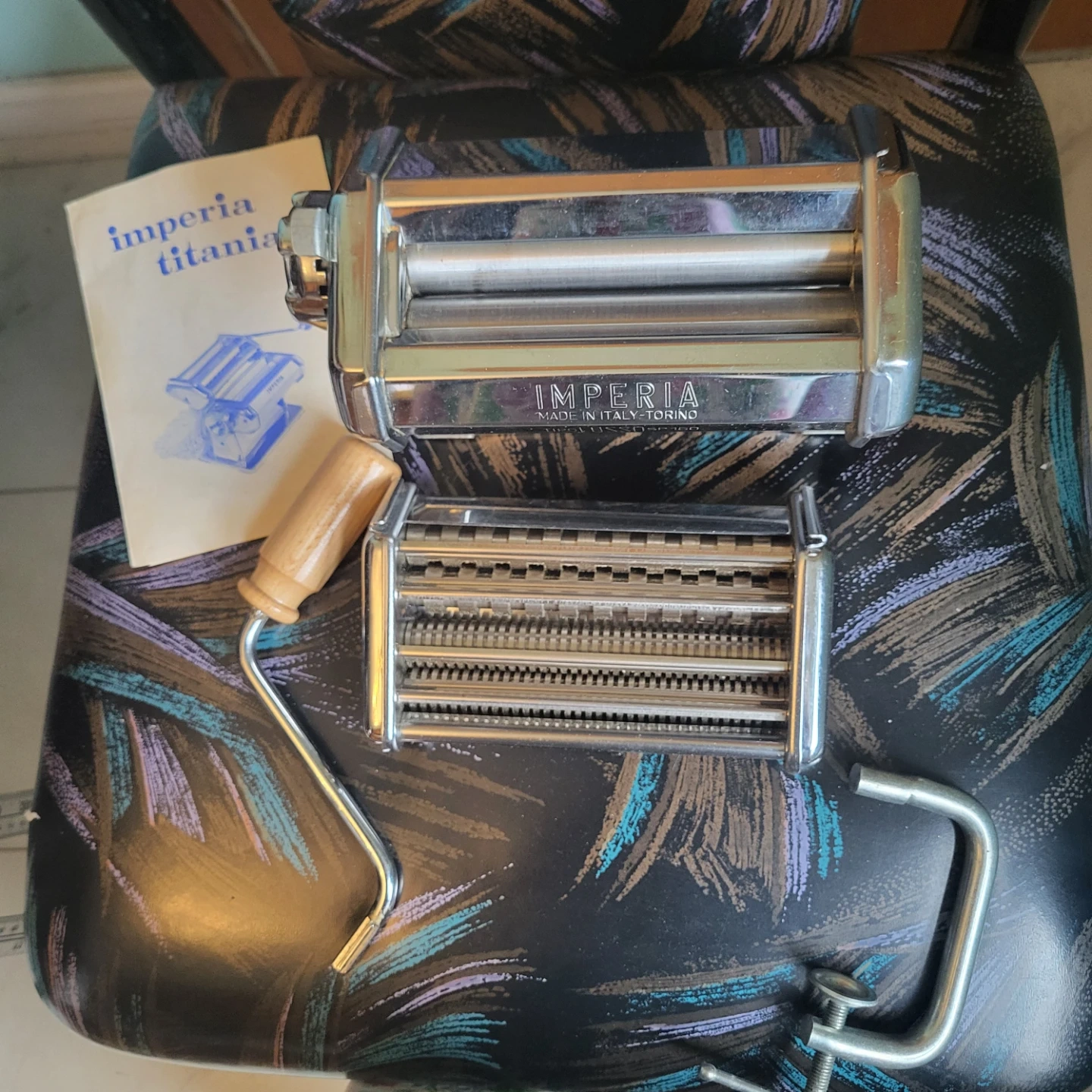 215Selling an Imperia Titania Tipo Lusso SP150 pasta machine! It's in great shape and ready to help you make some delicious homemade pasta. Comes with the handle and clamp.