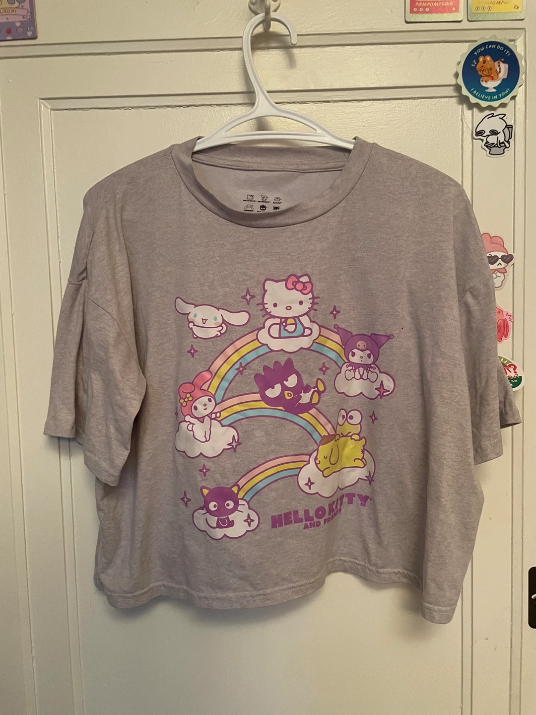 Cute grey T shirt with lots of Sanrio characters on it! It’s official Sanrio too!