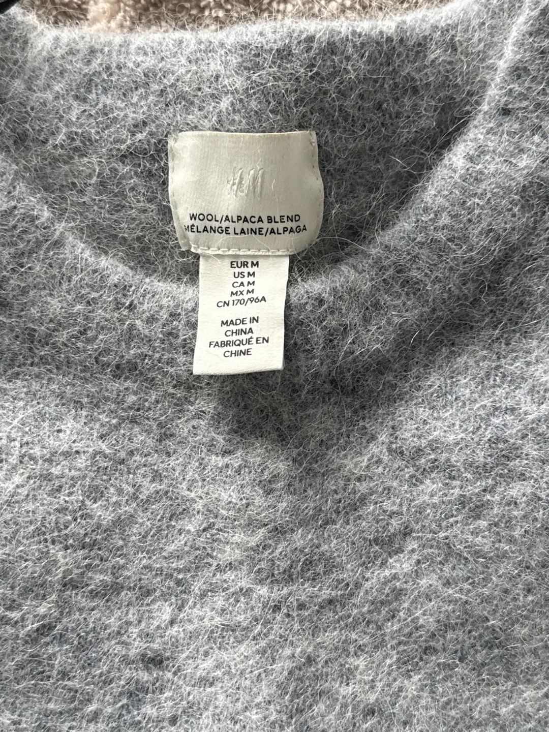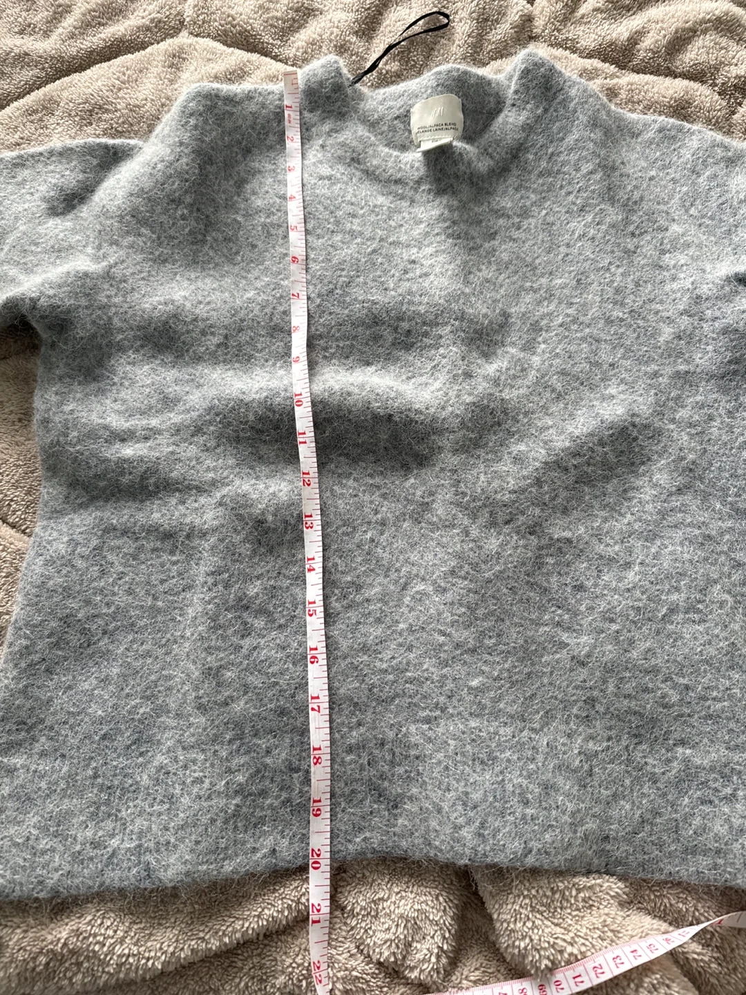 A little shrunk😔 %30 wool %35 alpaca blend sweater, I think the size can be restored if hand washed with hair conditioner. I added the measurements to the pics, probably fits a xs/s now
