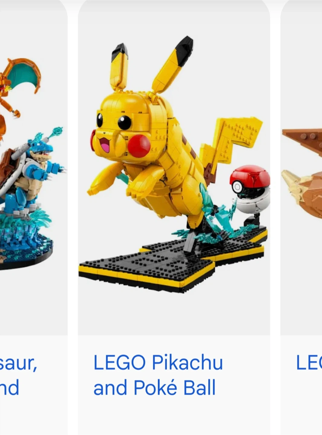 Build Pikachu with this LEGO set. It comes with a Poké Ball accessory and a display base. A fun build for Pokémon fans!