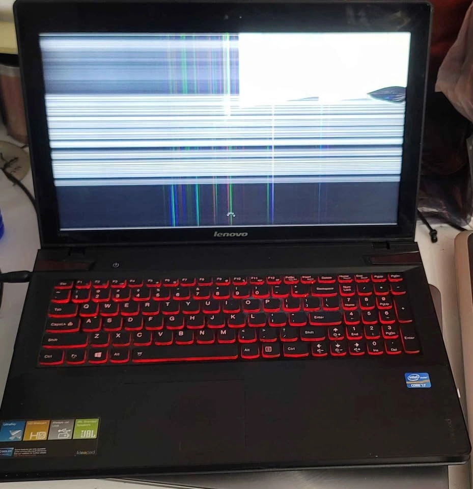 NOTE: THE DISPLAY SUDDENLY STOPPED WORKING. SEE PICTURES. WILL WORK WITH AN EXTERNAL MONITOR OR TV. Lenovo IdeaPad Y500 15.6" GAMING LAPTOP, Intel Core i7-3630QM @ 2.40GHz (8GB RAM 256GB SSD) Windows 10 NVIDIA GEFORCE GTX 750M - CD DVD. Perfect system for Gamers, Video/Music Editors, Graphic Designers, Vloggers, Programmers, Stock Trading, and running any high performance apps. The charger is included. Battery holds a charge and runs well. MAKE+MODEL: Lenovo IdeaPad Y500 NVIDIA GeForce GT 750M CPU: i7-3630QM RAM: 8GB DRIVE: 256GB SSD BATTERY: Holds a charge, length of time not tested. OPERATING SYSTEM: Windows 10 CHARGER INCLUDED. Feel free to message if you have any questions!