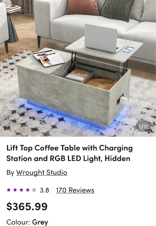amazing coffee table with LED lights, charging station and lift up top. Selling because I got two, and I only needed one. coffee table 250$ (orinal price was over 400$)- Grey- new in box tv stand 200$ (original price was a bit under $400)- Grey with Black- new in box together can sell for $400 pick up only from Oakville e-transfer preferred