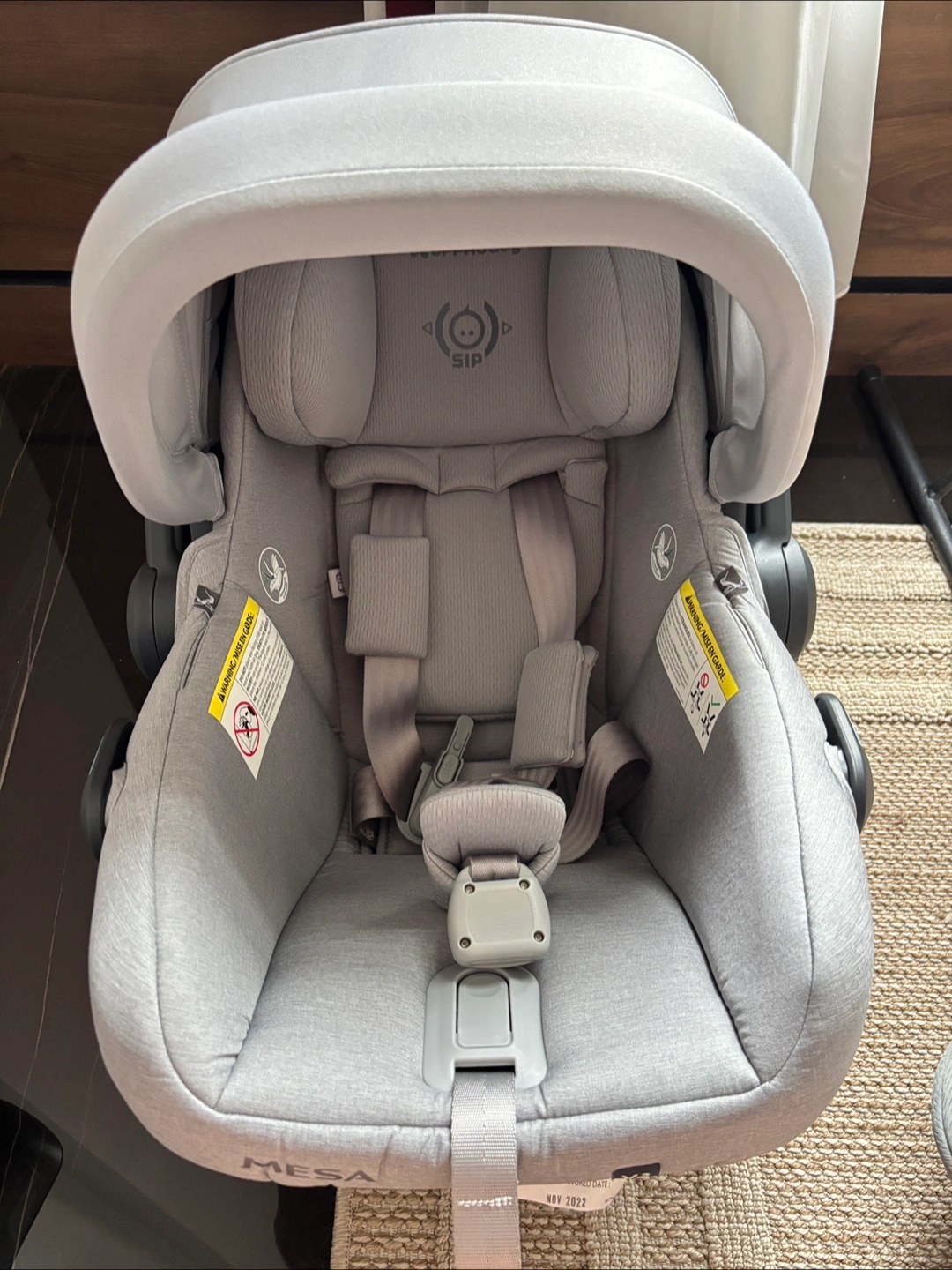 Selling a gently used UPPAbaby MESA infant car seat in grey. It's in great condition and ready for a new little one! The car seat features the SIP (Side Impact Protection) system for added safety. Free cover. Manufactured in 2022.
