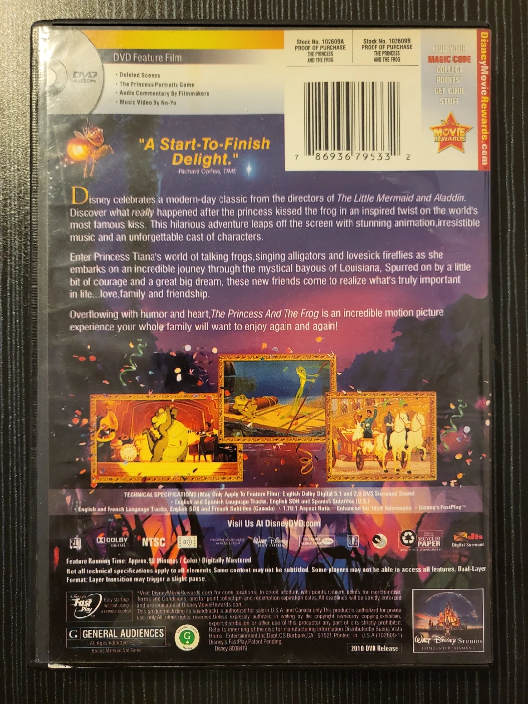 Selling a DVD of Disney's 'The Princess and the Frog'! It's a great movie for the whole family. Enjoy the classic story with singing alligators and lovable fireflies!