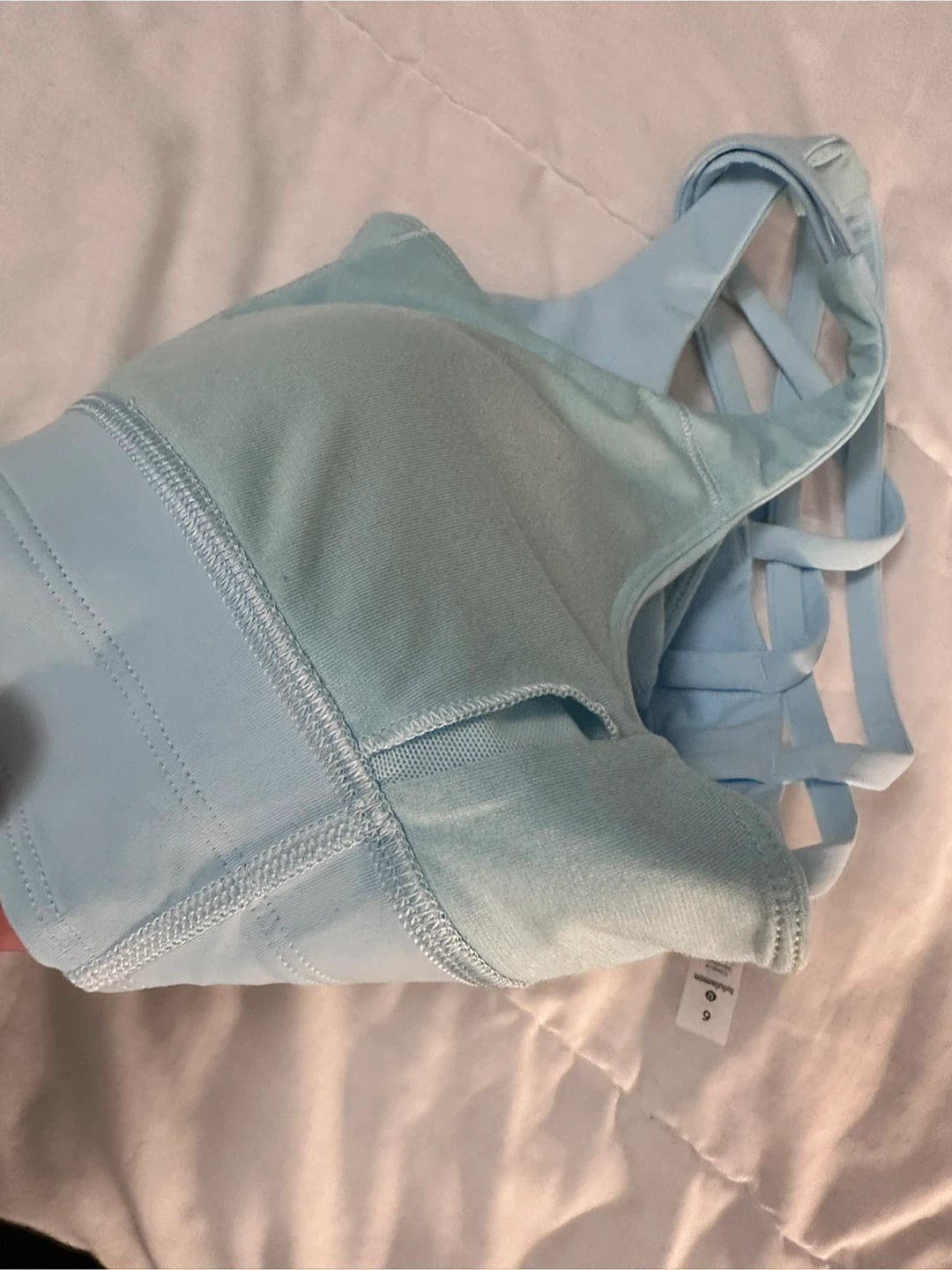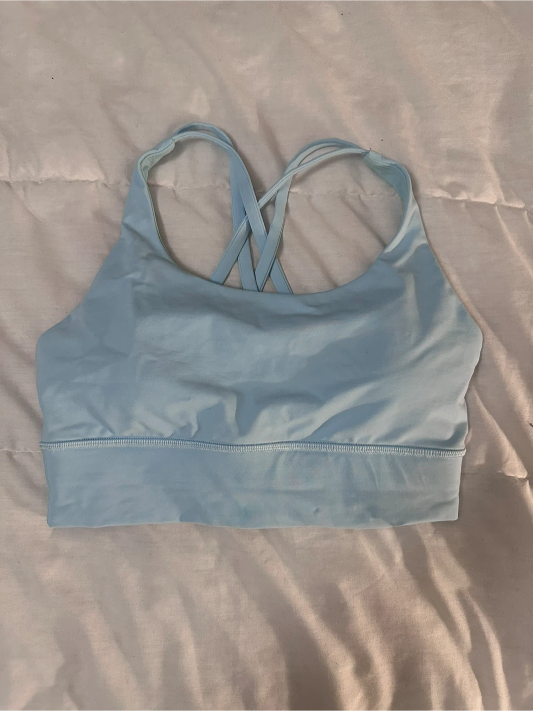 Selling a Lululemon sports bra in size 6! It's in great like new condition and ready for your next workout. Color is pastel / light blue. The material is a blend of nylon and lycra elastane, making it comfortable and supportive. Perfect for any activity!