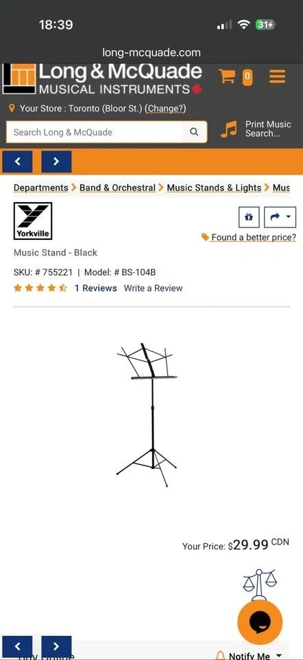 Buy & SellYorkville BS104B Music StandYorkville BS104B Music Stand$20It's like brand new and used twice only. Pickup address is Wellesley station. Cash preferred.WHERE TO MEETCheck LocationView MapSELLERSasaki TonyChurch and Wellesley11610 reviews0 chats·0 favorites·9 viewsSEND CHAT TO SELLERHi Sasaki Tony! I’m interested in your listing.Hi Sasaki Tony! I’m interested in your listing.Get the Karrot app to chatSign In to chat