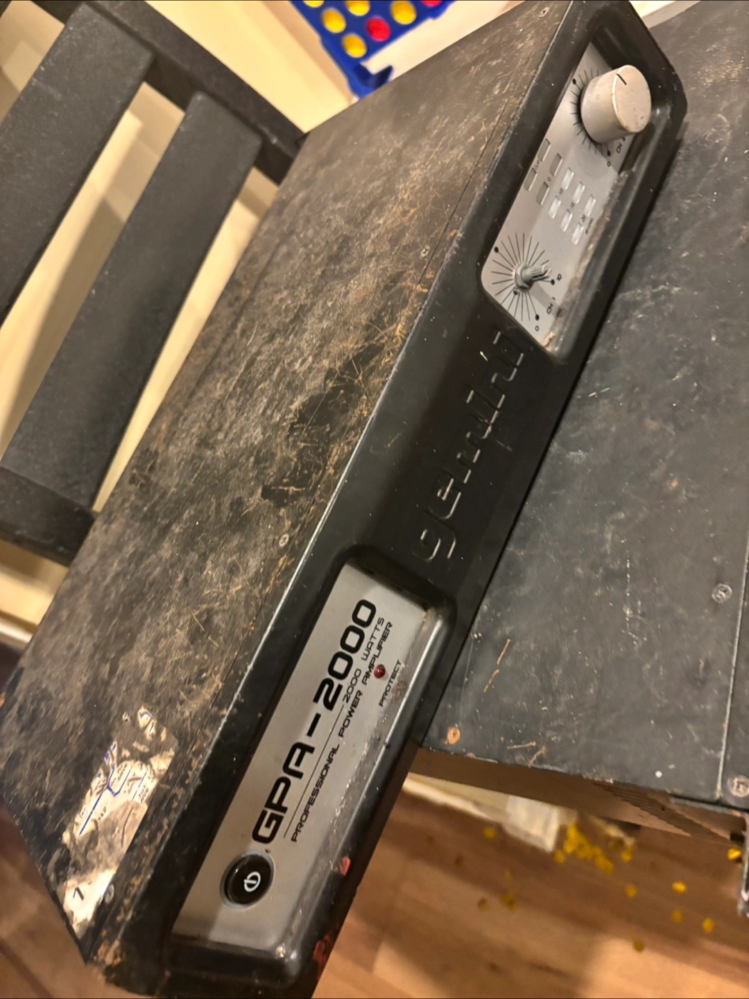 Selling a Gemini GPA-2000 professional power amplifier. It's a workhorse, ready to amplify your sound! It shows signs of wear, but it's fully functional and ready to go