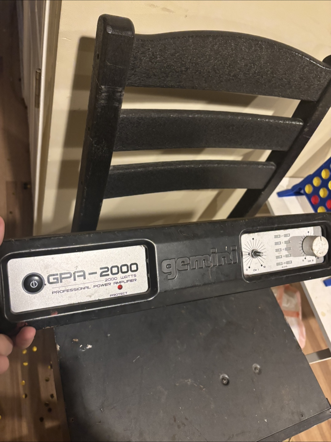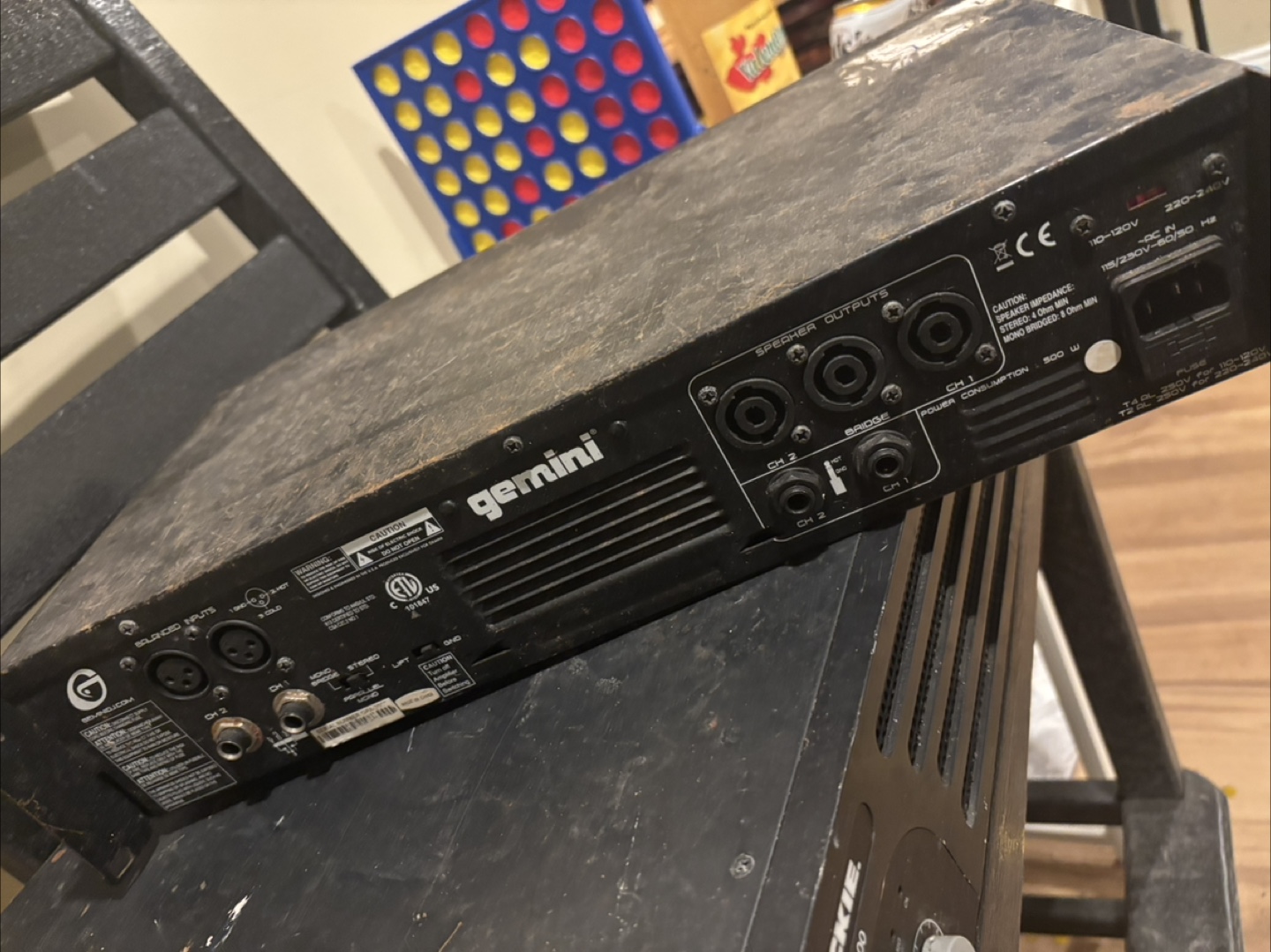 Selling a Gemini GPA-2000 professional power amplifier. It's a workhorse, ready to amplify your sound! It shows signs of wear, but it's fully functional and ready to go