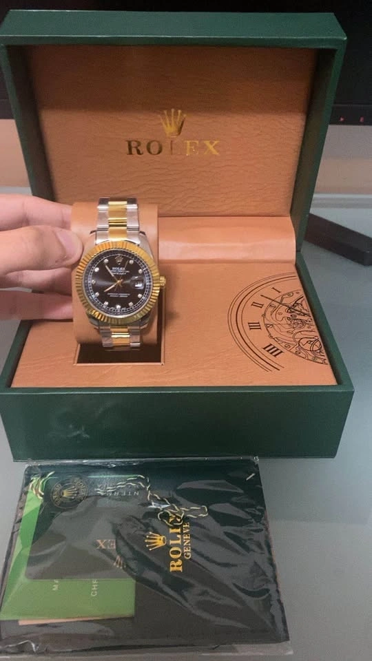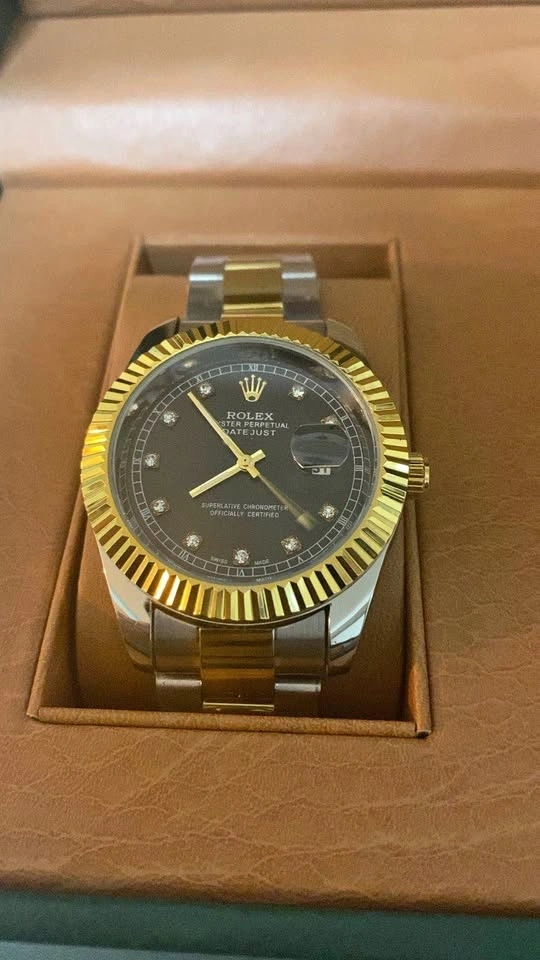 Brand new, never worn Rolex Datejust 41. Features a two-tone Oystersteel and 18k yellow gold construction with a gold fluted bezel and black dial with diamond hour markers. Comes with the original box, papers of authentication, link resizing tool, and protective plastic covering. Absolute pristine, top quality.