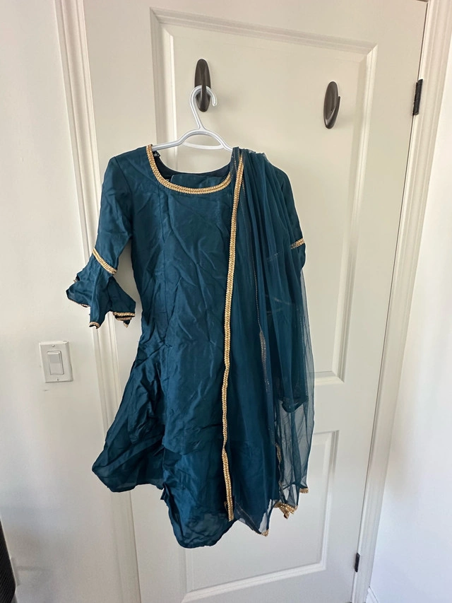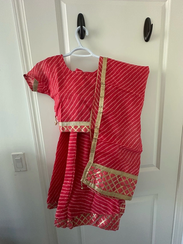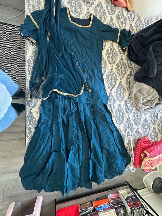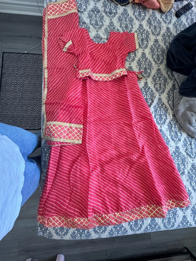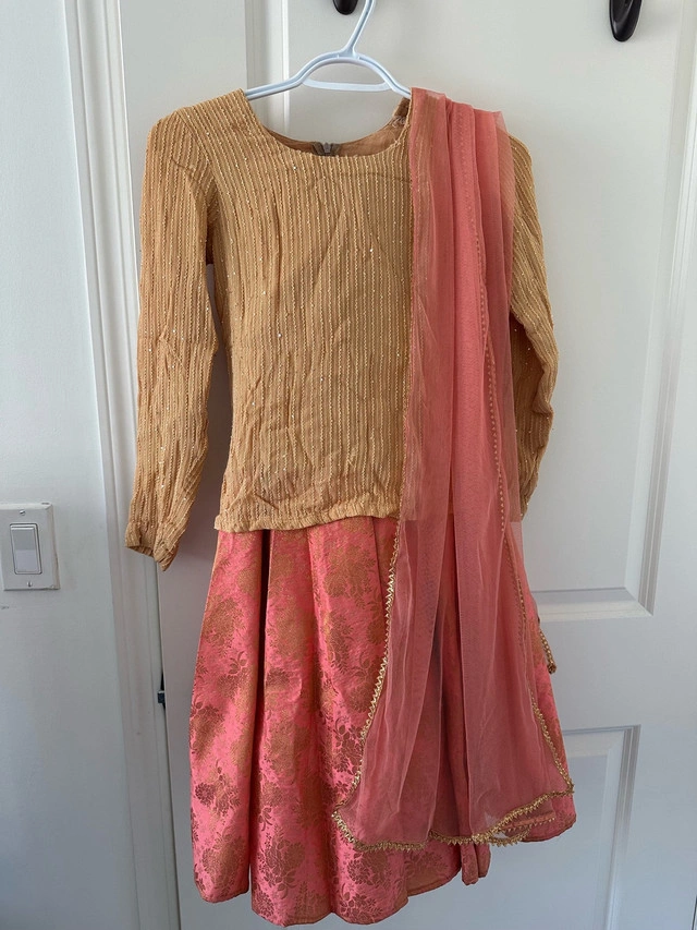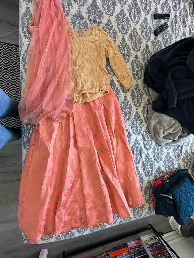 10Lehengas for sale for 9-10 year old. Orange leheriya is brand new and others (blue and peach are worn once). Got them from India; after single use only, my daughter outgrew them. The first one is not used. $15 each. Location: near Square One Mall.