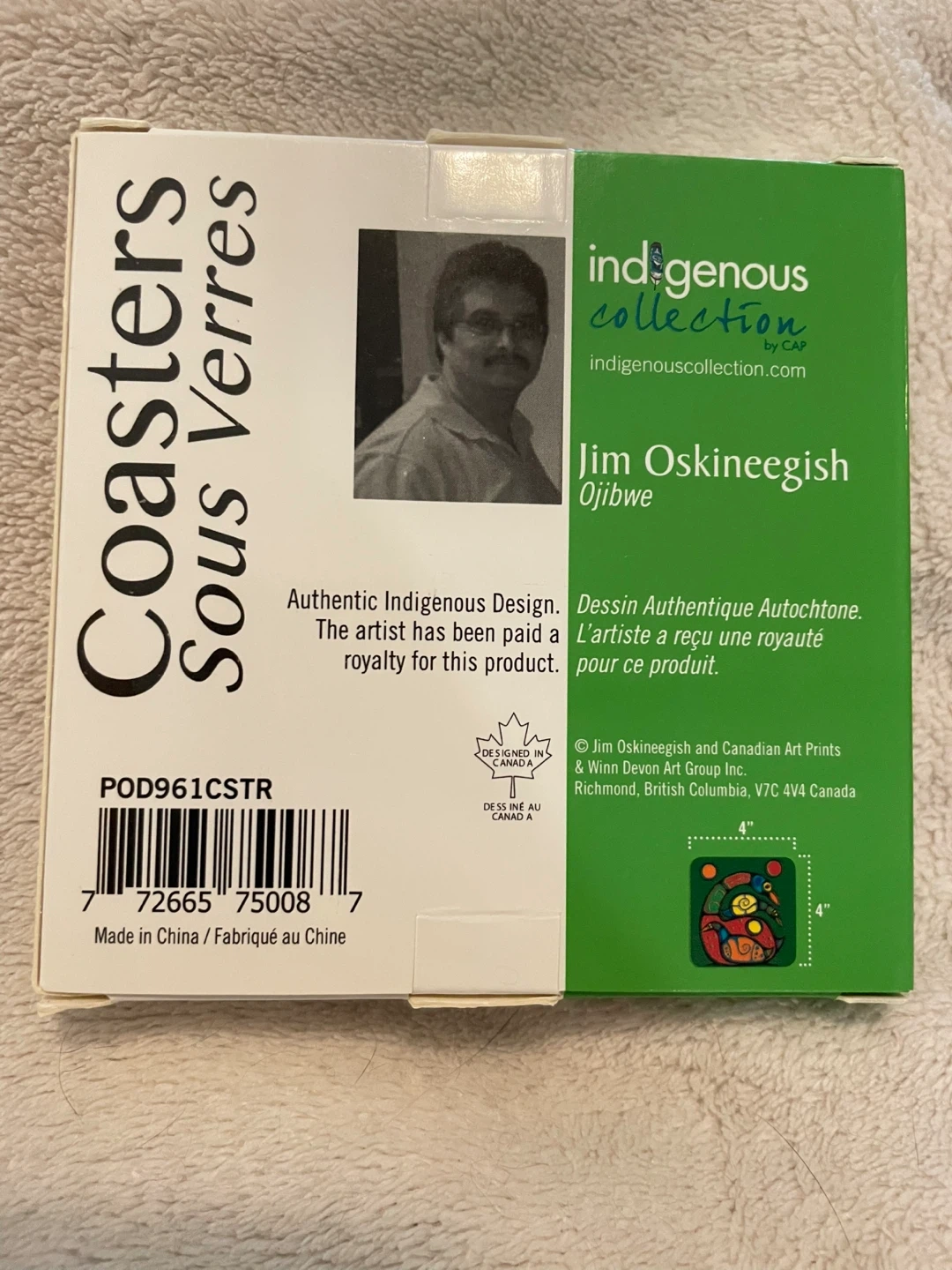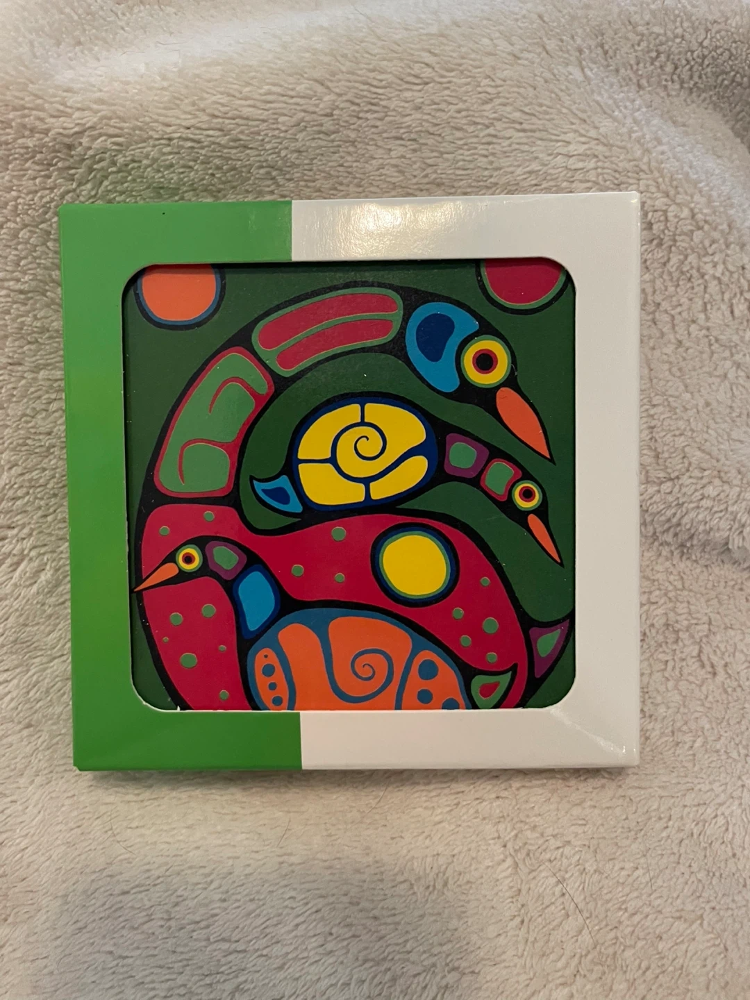 These NEW Indigenous Collection coasters feature a design by Jim Oskineegish. 4 coasters per box 4" x 4" 10.16 x 10.16 cm MDF with cork backing artist's cultural background - Ojibway artist has been paid a royalty from the sale of this product designed in Canada excellent hosting gift . Accepting etransfer for guaranteed hold . Please see my other listings