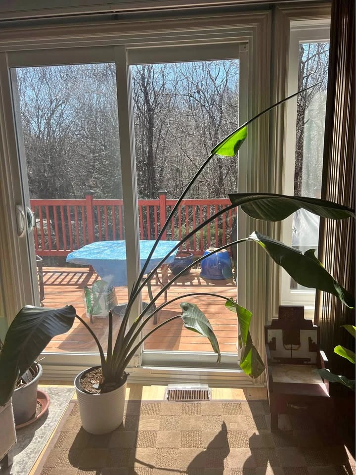 106.5 ft tall indoor bird of paradise. Needs to be staked. Use a warm paper towel to unfurl the rolled leaves. Known for its striking flowers and large, lush leaves, this low-maintenance houseplant thrives in bright, indirect light. Pick-up in Richmond Hill. Feel free to message if you have any questions!
