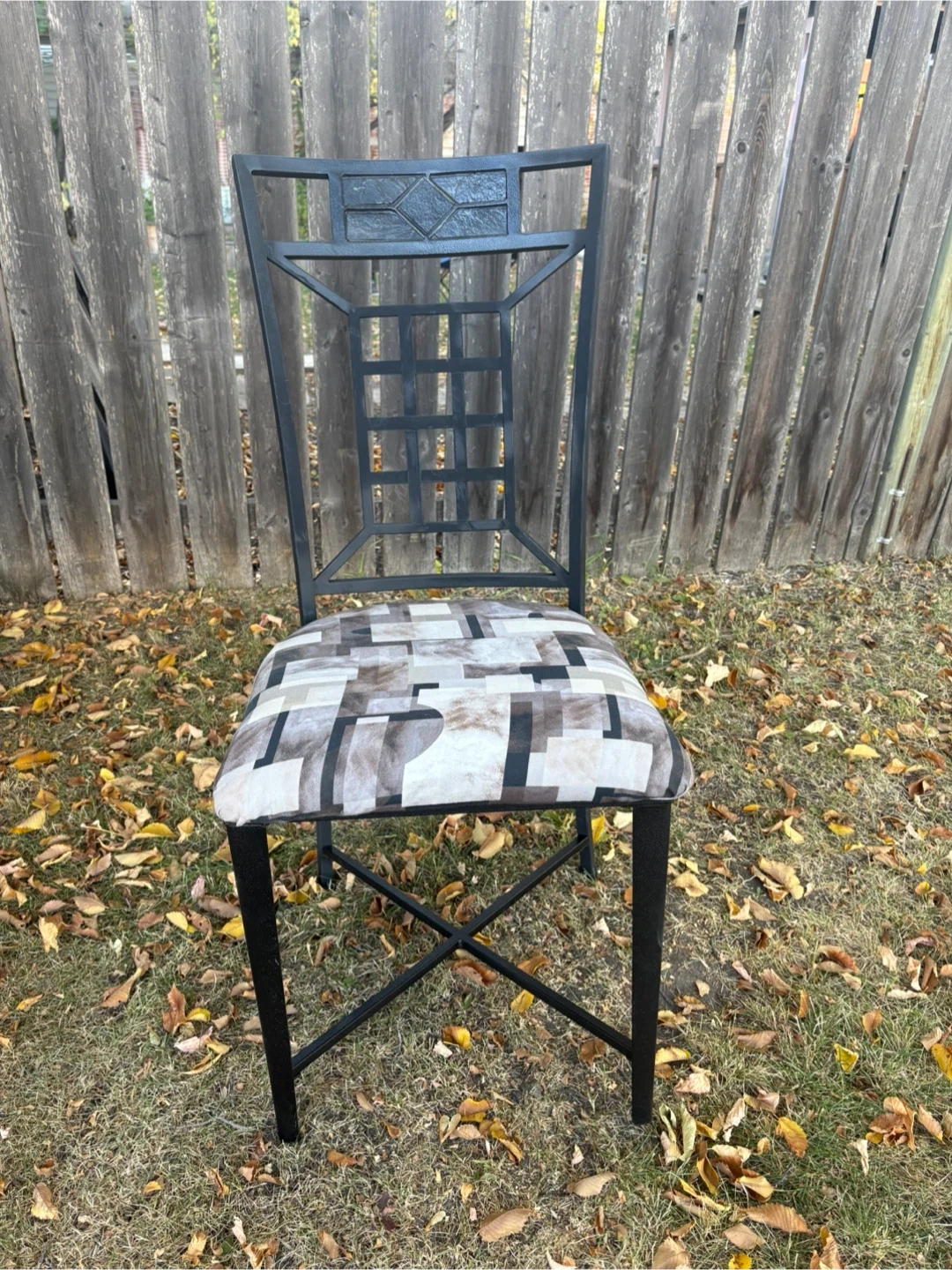6 Metal Dining Chairs $25 a piece, reupholstered and refinished.