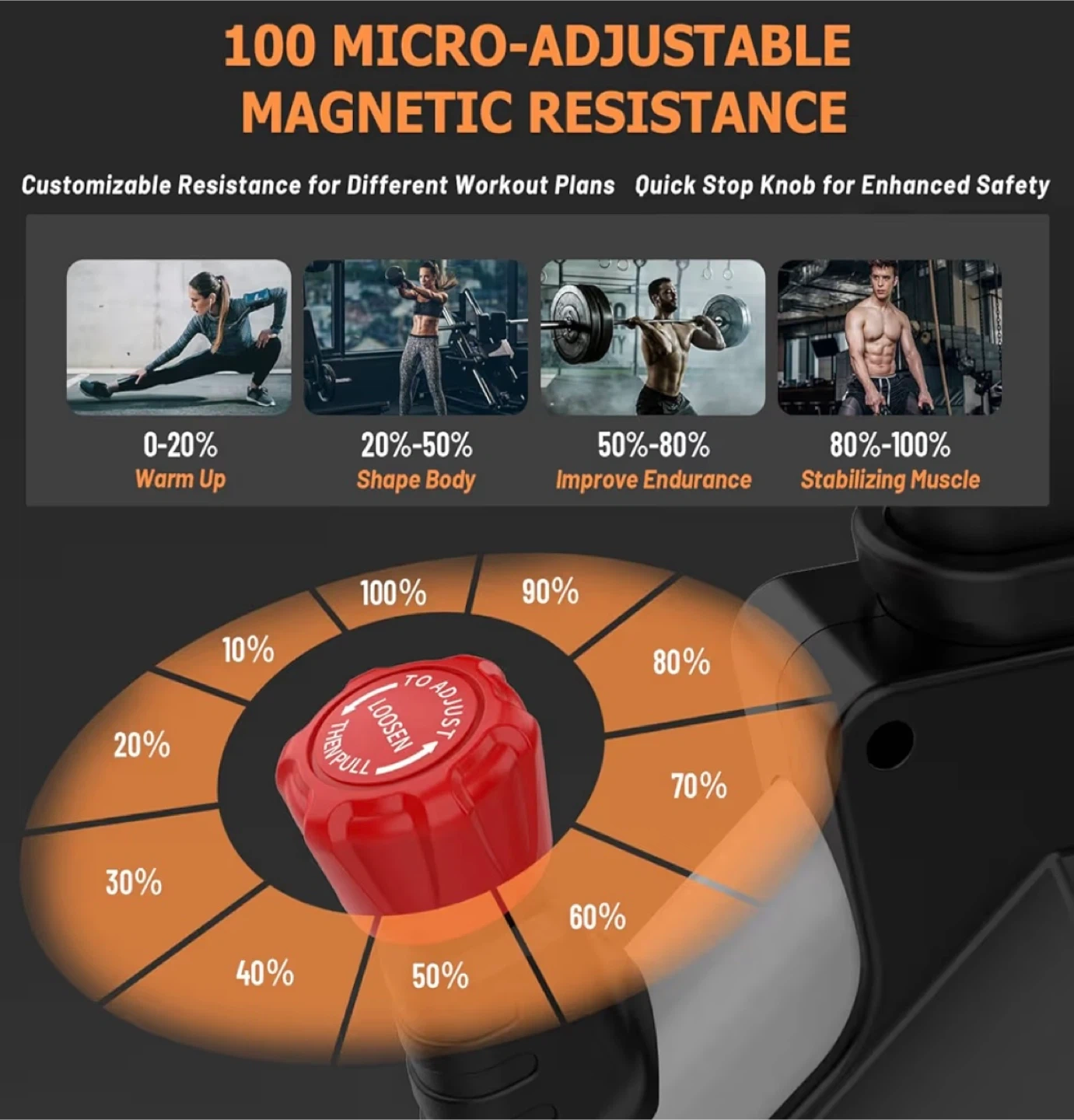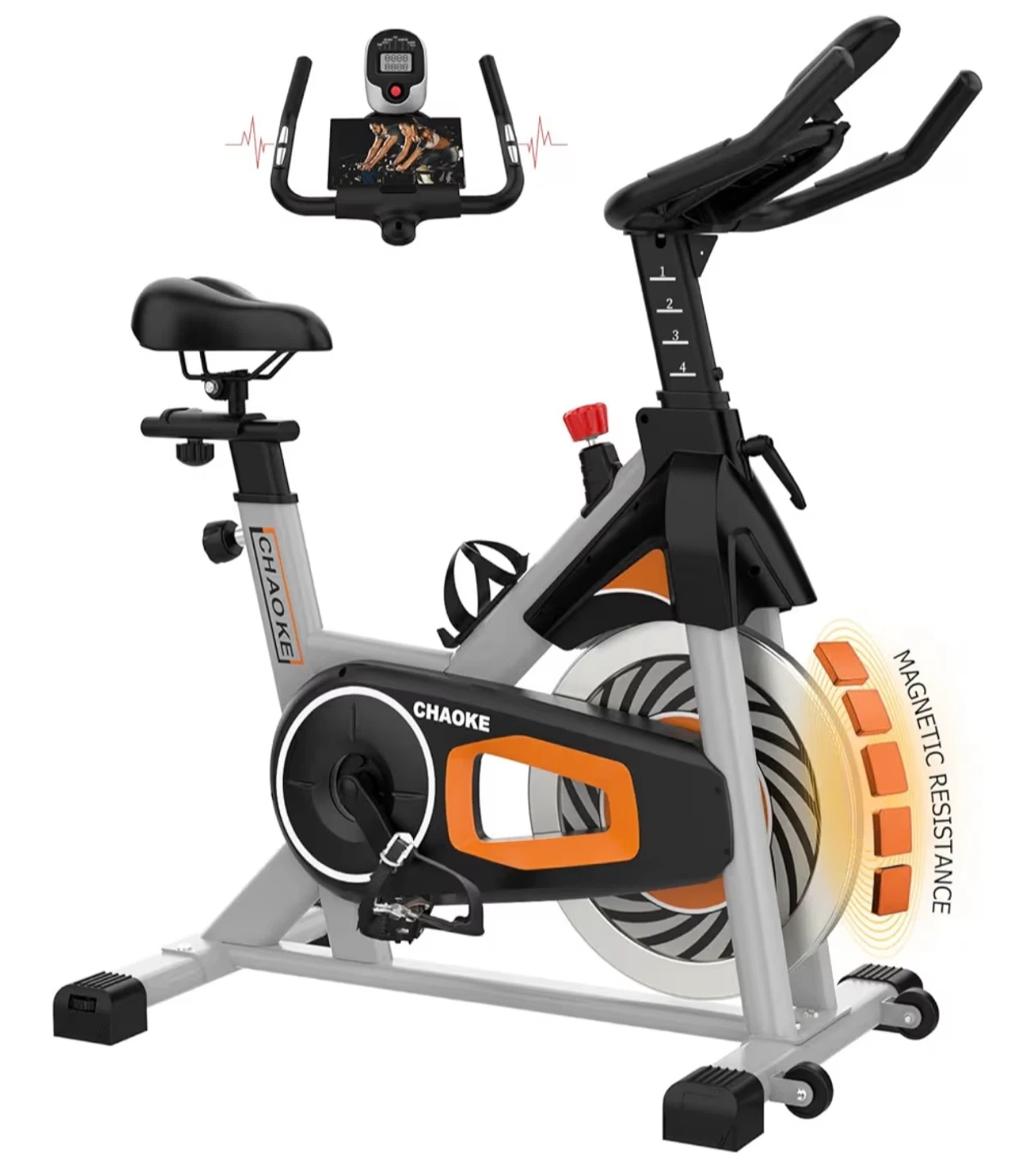 65Get your sweat on with this CHAOKE indoor stationary exercise bike! It features 100 micro adjustable magnetic resistance levels for a customizable workout. Key features include: - Near-silent belt drive - Adjustable seat and handlebar - Magnetic resistance - Heavy 40lbs flywheel