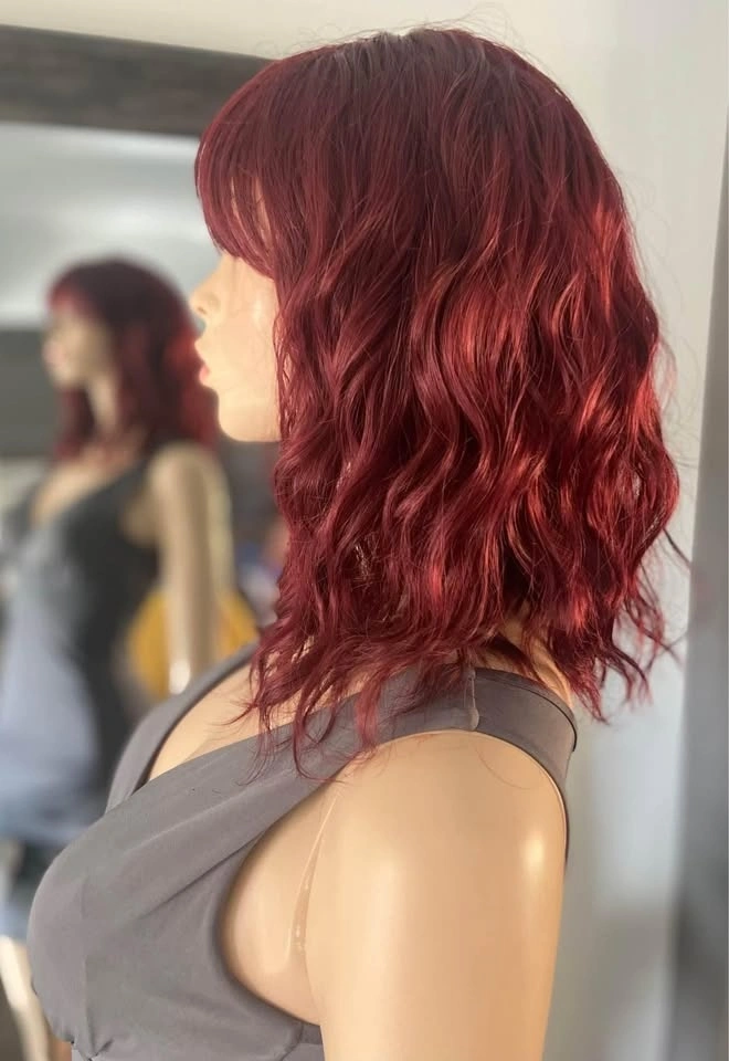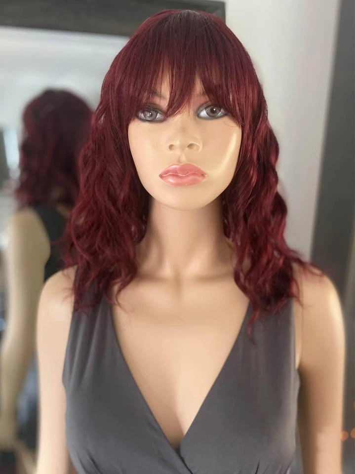 NWOT Shoulder Length Wavy Red Wine SyntheticWig with Bangs (2209)