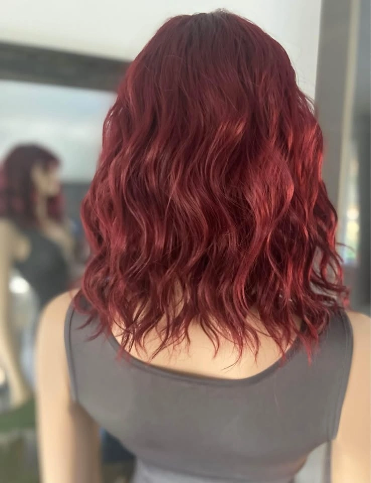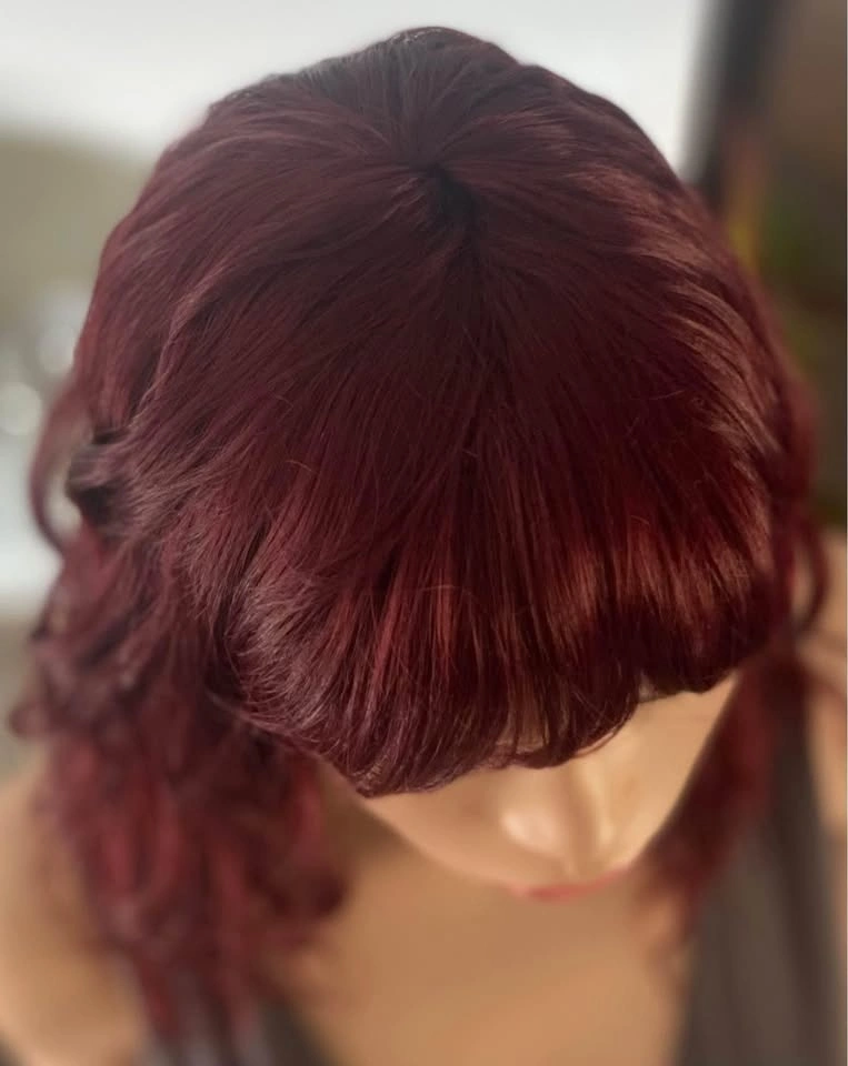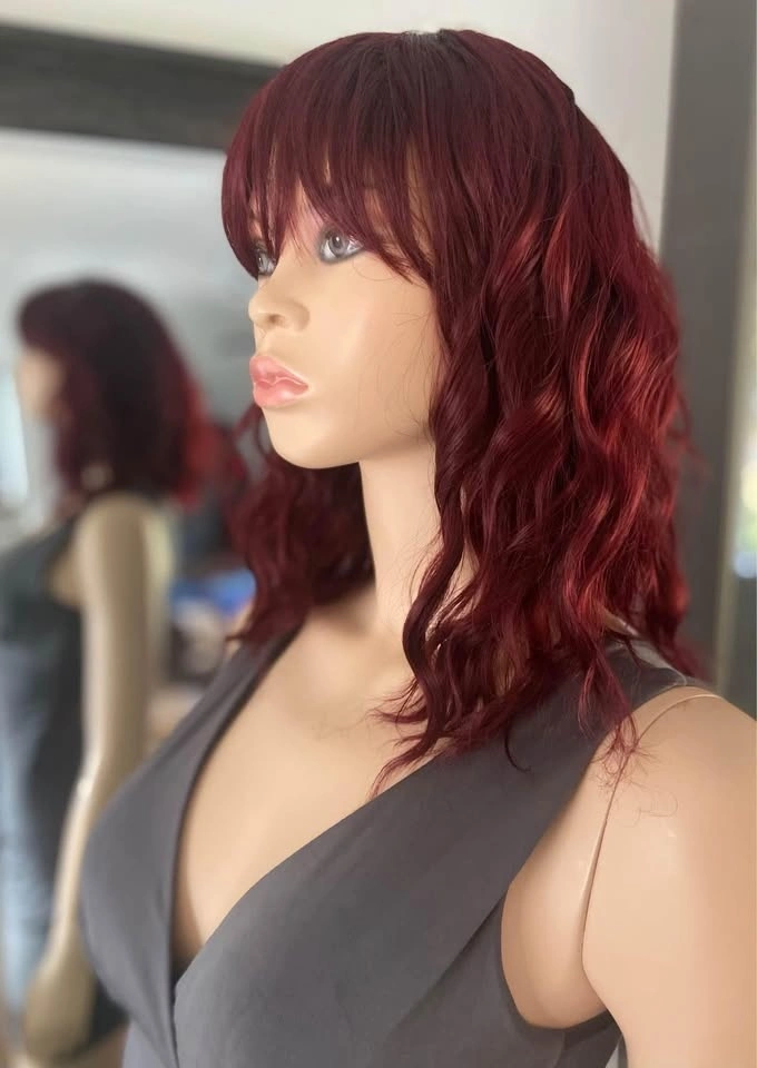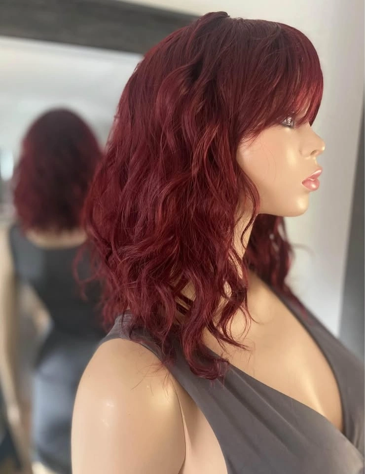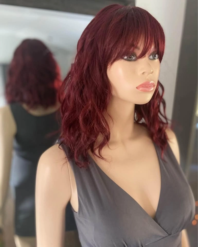NWOT Shoulder Length Wavy Red Wine SyntheticWig with Bangs (2209)