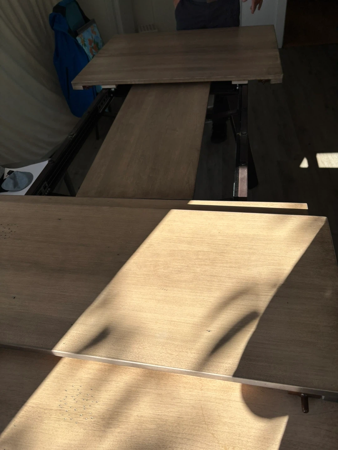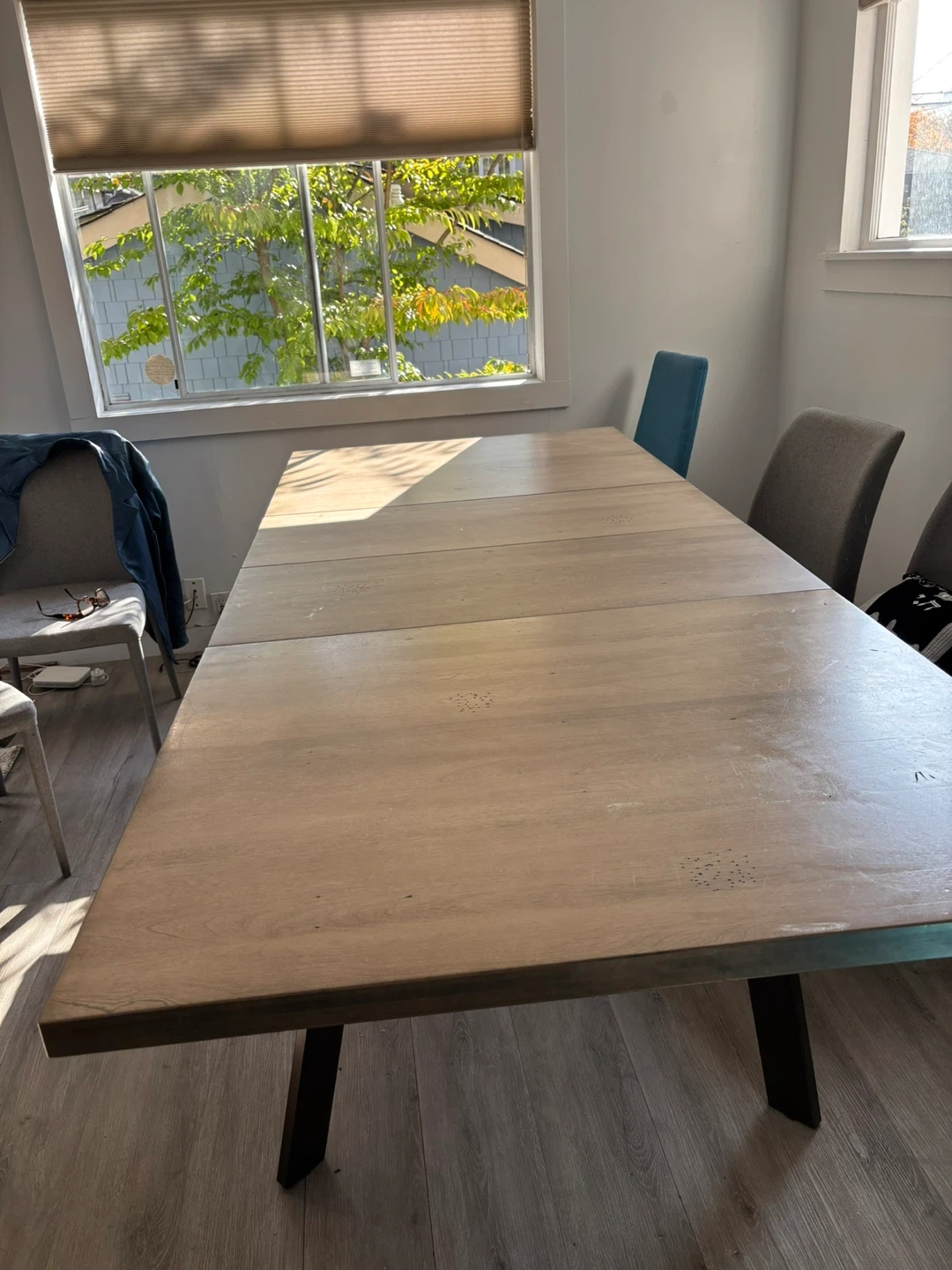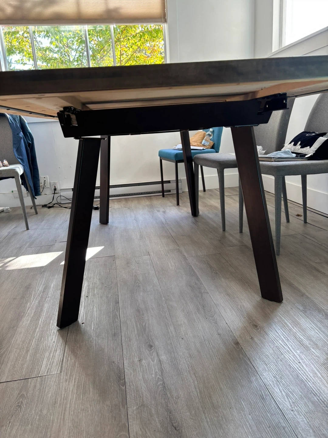 15Selling an extendable Industrial Revolution dining table. It's 5’ long and in great condition and perfect for hosting extra guests! The table features 2 15” leaves to extend the length to 90”. It's a great addition to any dining room or kitchen.