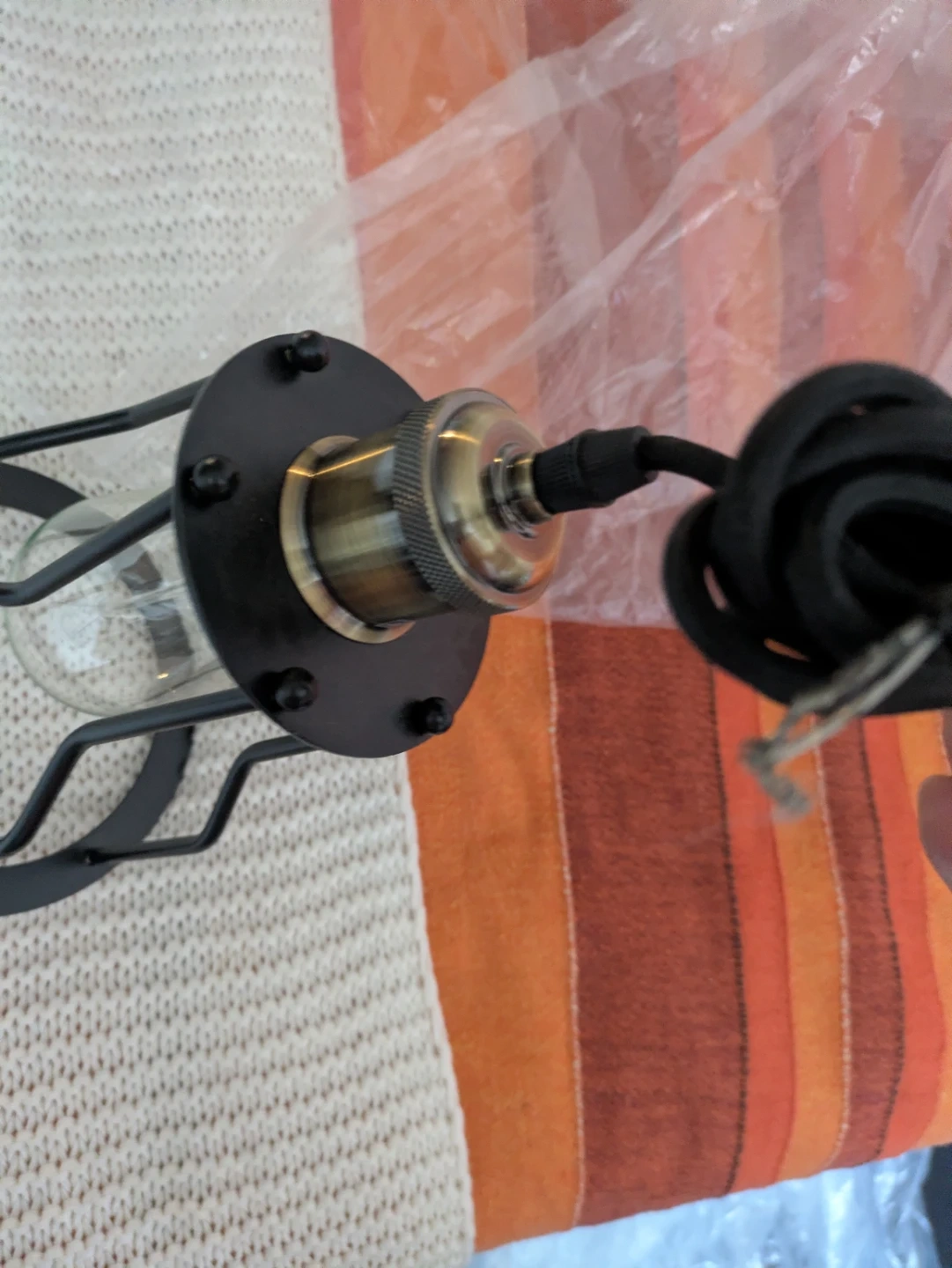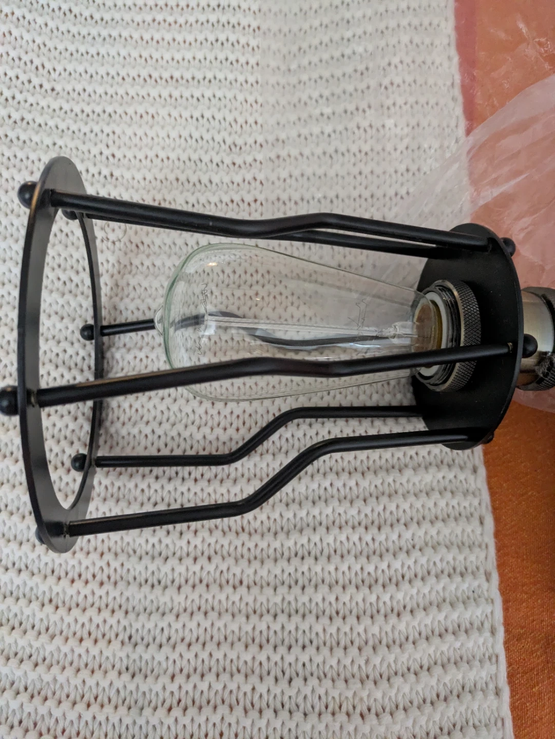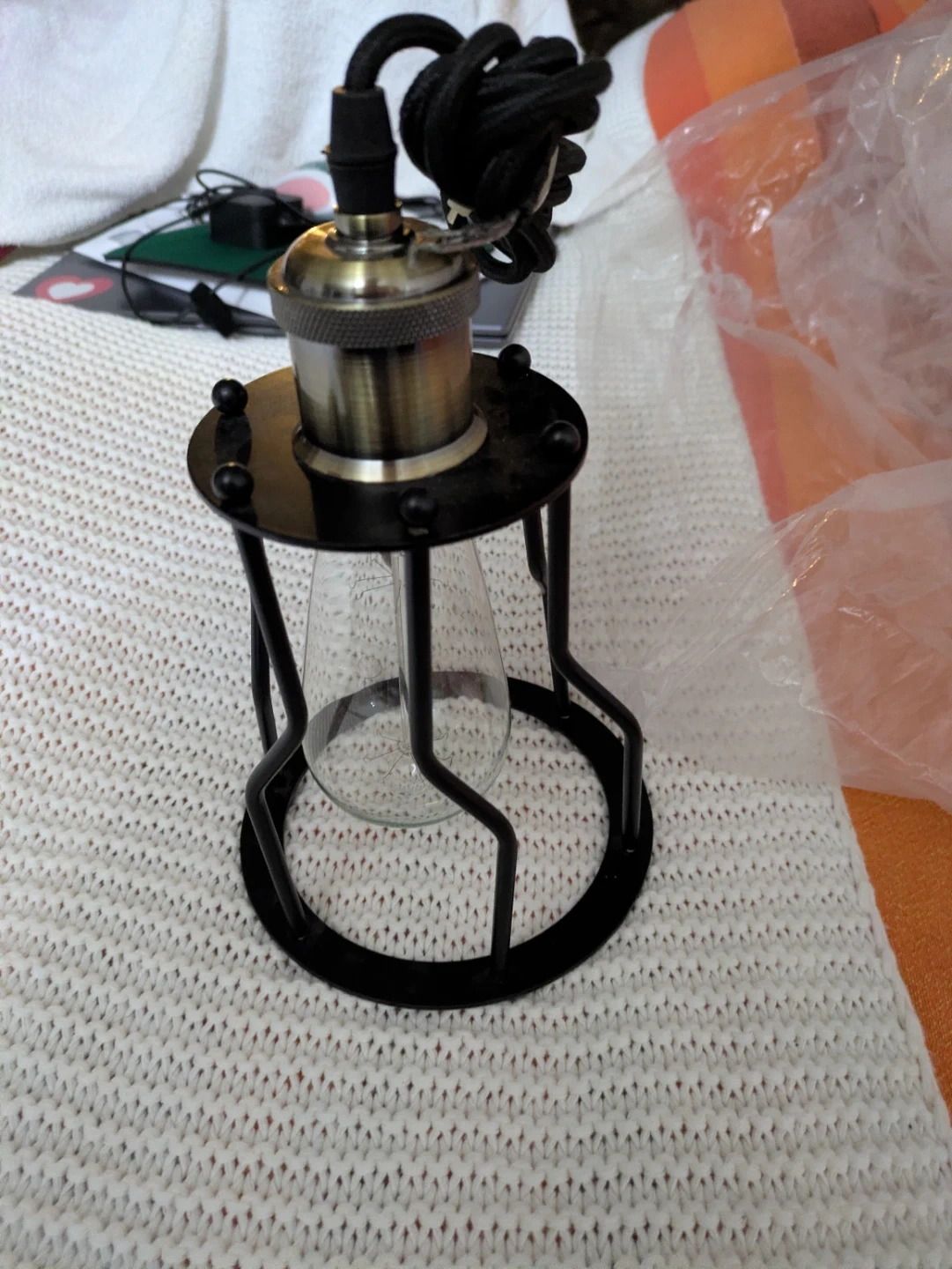 15Here's a cool industrial-style cage pendant light! It features a black metal frame and a clear glass bulb. Perfect for adding a touch of vintage charm to any room Location: warden and sheppard