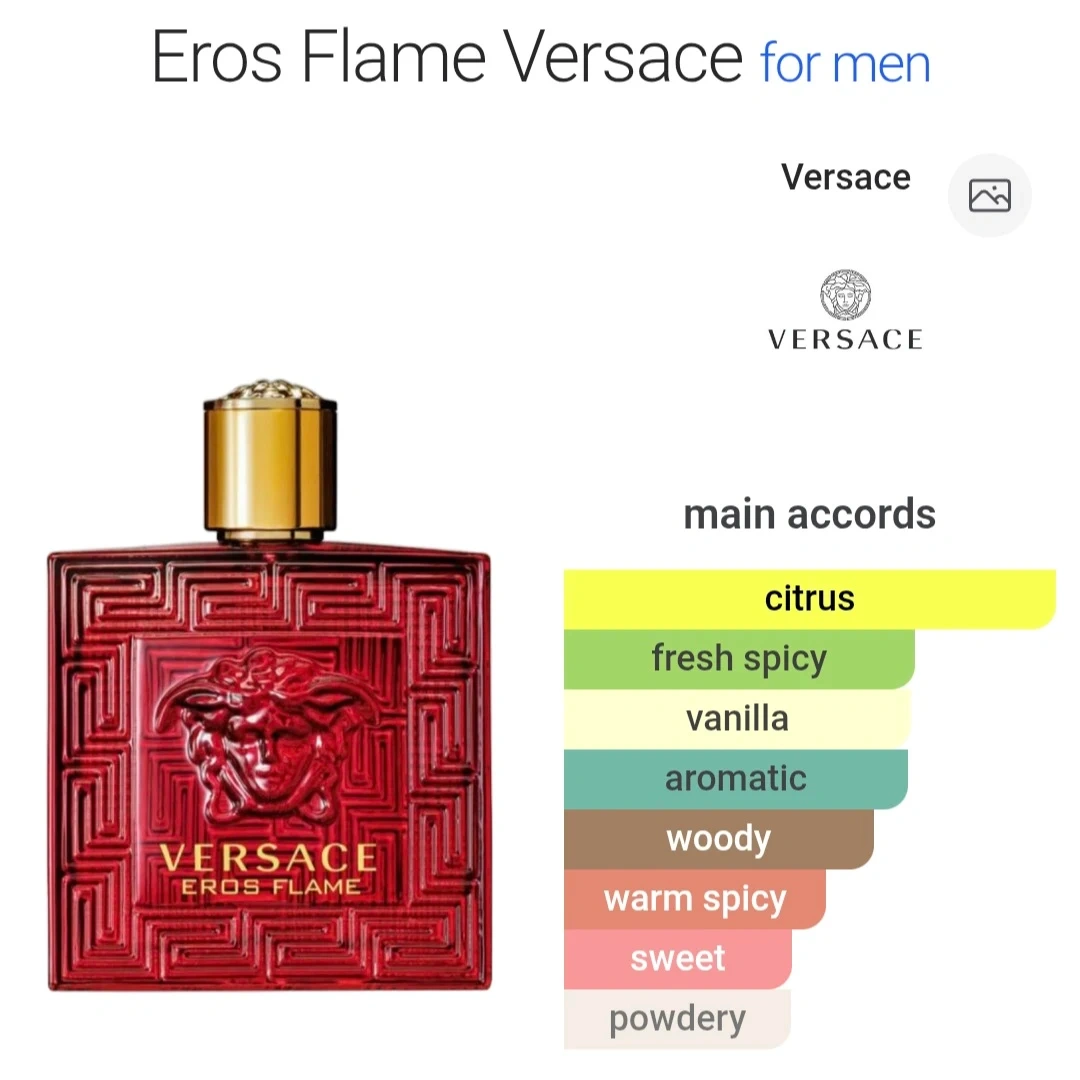 Authentic Versace Eros Flame Eau de Parfum in a compact miniature bottle, perfect for travel or sampling this bold fragrance. This scent is warm, spicy, and masculine with a vibrant blend of citrus, black pepper, and woody vanilla notes—ideal for evening wear or a confident signature scent.