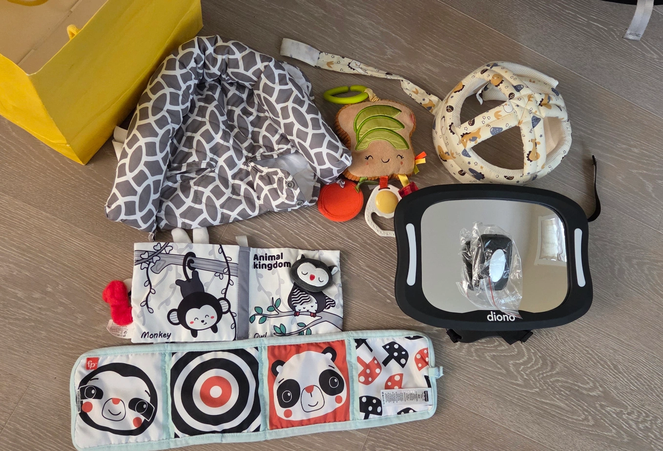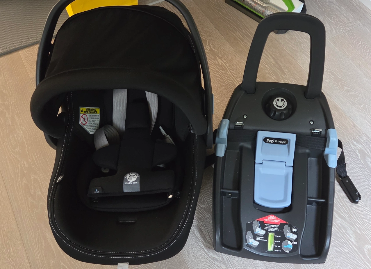 Selling a Peg Perego Viaggio Car Seat! It's in great condition and includes a variety of baby accessories. The manufacturing date is 2023 June 12.