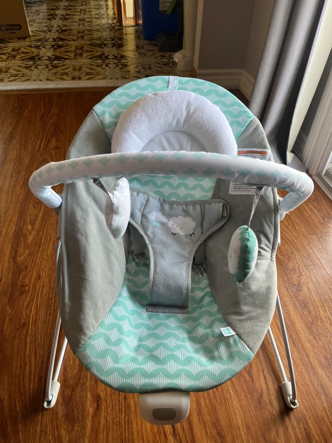 15Gently used Infantino bouncer seat in great condition! The seat features a cute sheep design and a soothing, bouncy motion to keep your little one content. Perfect for newborns and infants