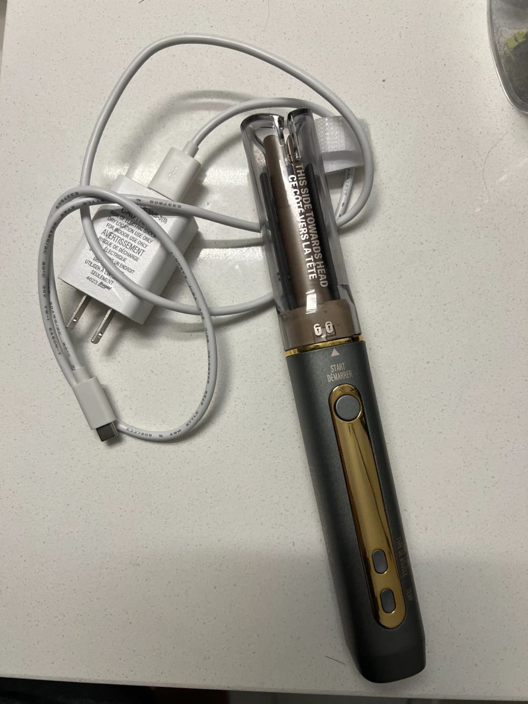 FEATURES Goodbye Cords: Rechargeable cordless technology with USB charging cable, adapter, and 1 lithium-ion battery. This high-performance curler is rechargeable (charge fully overnight before first use) — runtime will vary depending on hair type and tempera. Custom Curls: Choose 1 of 3 preset curl types (defined, loose, or wavy). Mix & Match: Switch up temperature and curl type to change your style. Heat for Every Hair Type: Choose the right one for you 180°C or 200°C (360°F or 395°F). Worry-Free Styling: Tangle-free technology and barrel cover protect hair while curling and prevent accidental scalding. Ceramic Technology: Even heat for less damage and healthy-looking hair. No Stress: Low energy-efficient mode and auto-off technology. On-the-Go Styling: Easily fits in your handbag or gym bag. Dual Voltage Adapter: Ideal for international travel. Brand new item, comes with charger but no box. Porch pick up in East Maple Ridge or can meet Downtown Vancouver on certain weekdays.