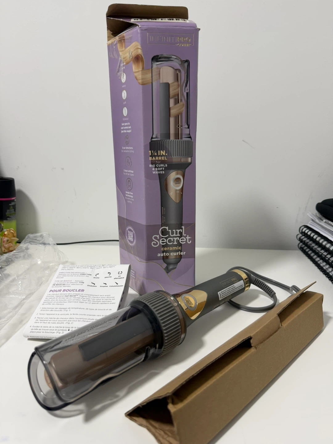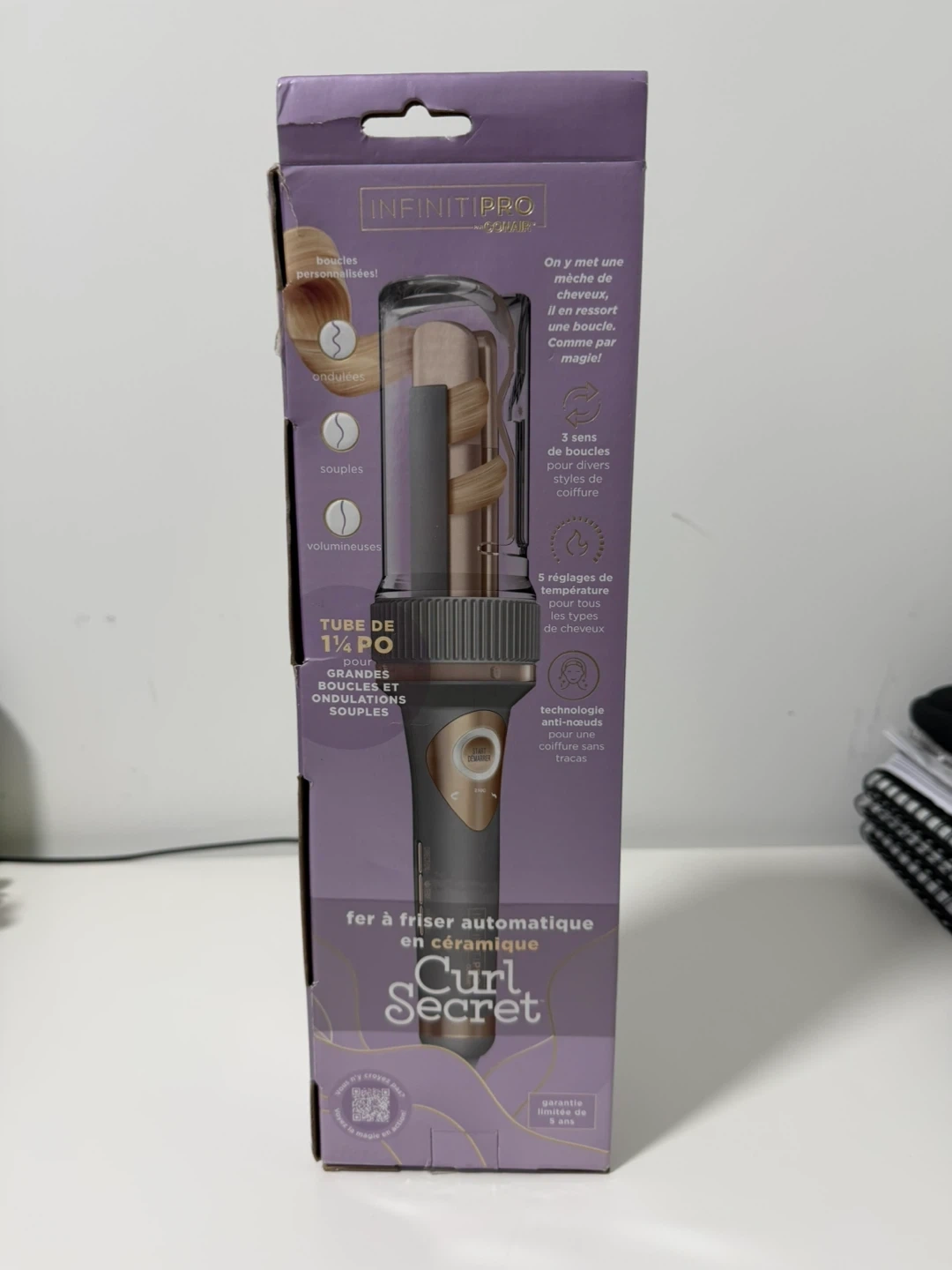 InfinitiPRO by Conair Curl Secret – Ceramic Auto Curler, 1¼” Barrel (Like New) Pickup Location: Downtown Toronto (near Eaton Centre) Included in Package: - InfinitiPRO by Conair Curl Secret auto curler - Instruction manual - Original packaging (shows light shelf wear) Retail price: $74+tax