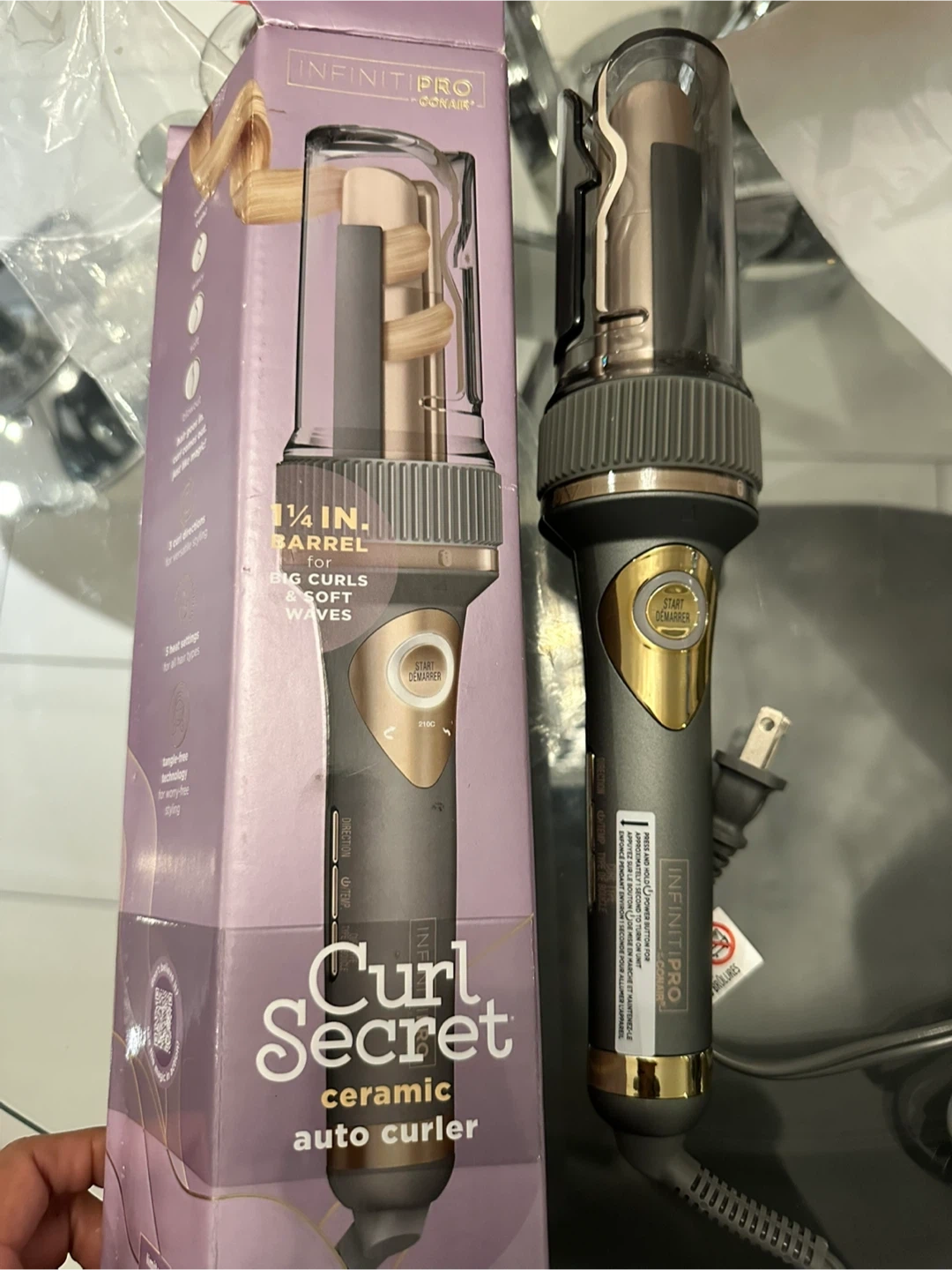 106I'm selling an InfinitiPro by Conair Curl Secret ceramic auto curler! It has a 1 1/4 inch barrel for big curls and soft waves. It also features tangle-free technology for worry-free styling. New in the box.