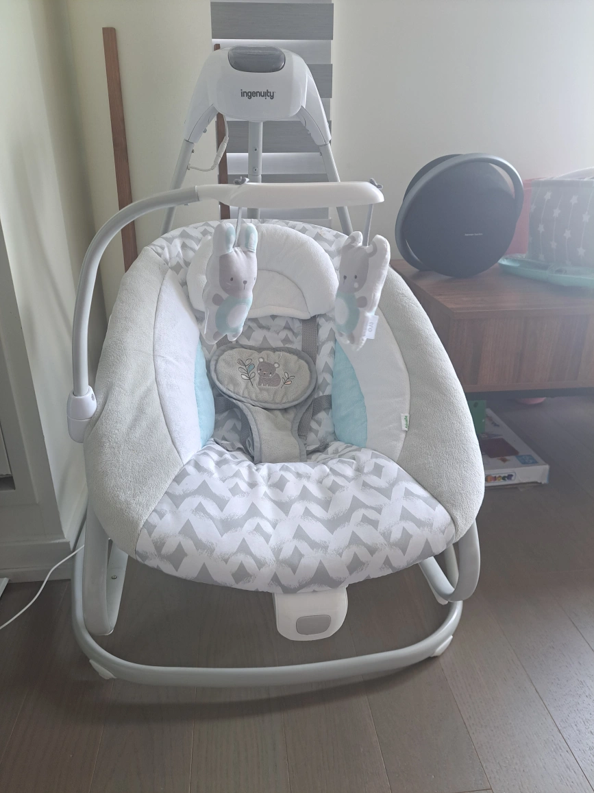 Selling an Ingenuity 2-in-1 SimpleComfort Lightweight Compact 6-Speed Multi-Direction Baby Swing & Bouncer. It has vibrations and nature sounds and is suitable for babies 0-9 months old or up to 20 lbs. It's in great condition, barely used.
