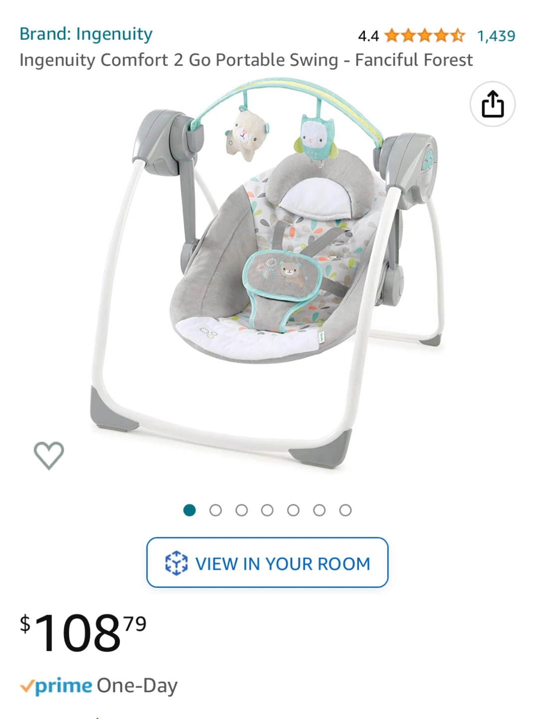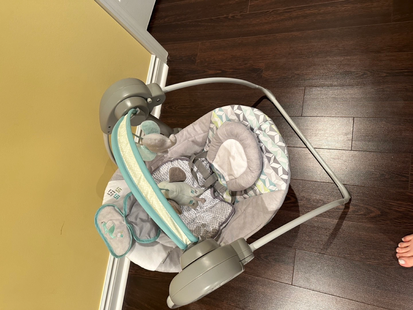 72I bought this swing for my baby but he didnt like it! Used only 2-3 times, looks new. - Great space-saving size for home or travel - TrueSpeed™ technology maintains multiple speeds even as baby grows - Comfort Recline™ seat with 2 positions to suit baby's needs - Toy bar removes for easy access to baby - Swing timer has three settings: 30, 45 and 60 minutes for mom's convenience Pick up: Dufferin and Rutherford