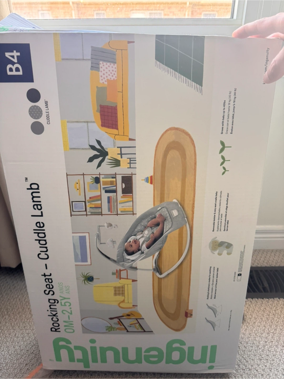 209Selling an Ingenuity Cuddle Lamb Rocking Seat suitable for babies from 0 to 2.5 years old. It grows with baby up to 40lbs. The rocking seat has a removable bolster and cozy seat cradle baby
