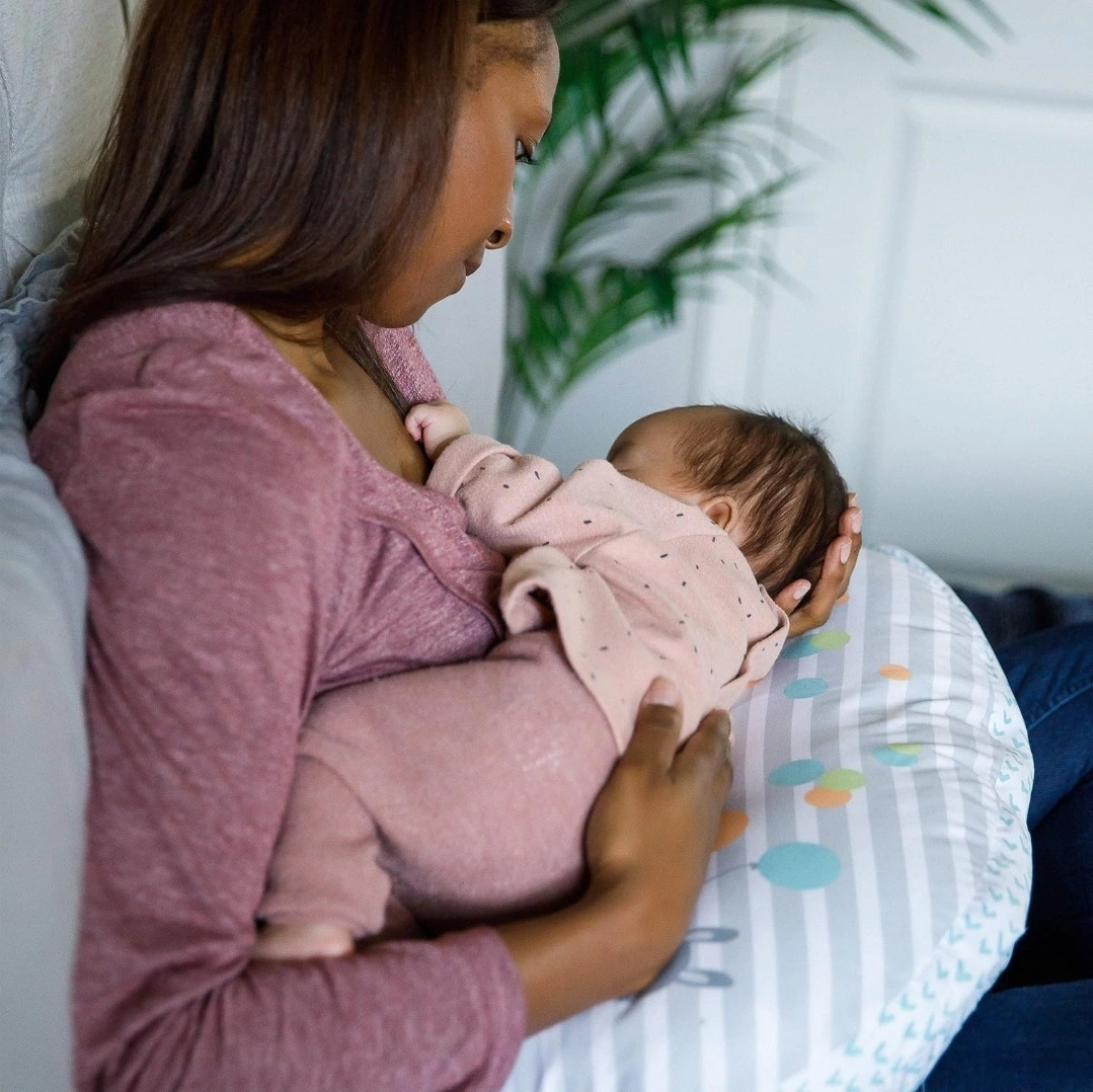 Designed with an ibclc lactation consultant. Relax-fit supports both mom and baby. Water-resistant pillow material helps prevent messes. Includes pillow, machine-washable slip cover and removable toy bar. Breastside reminder system to help keep track of feedings. Pick up Upper Lonsdale, cash only.