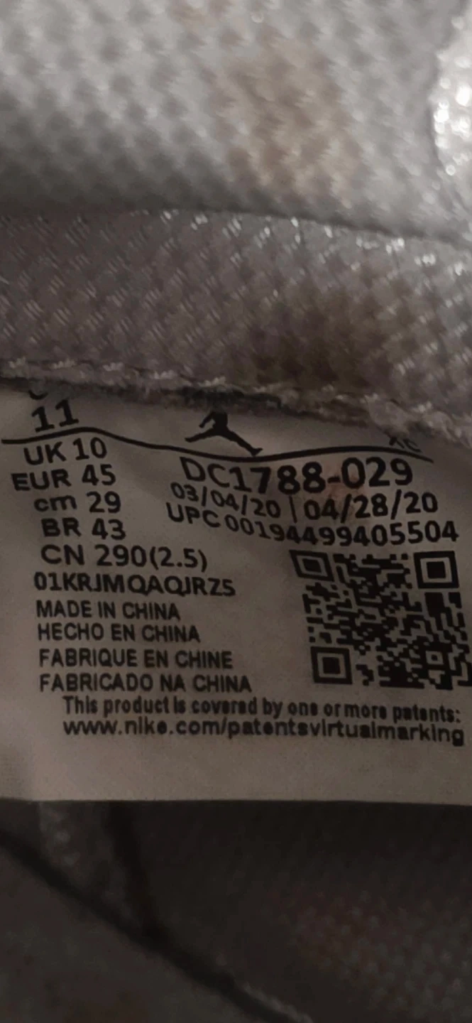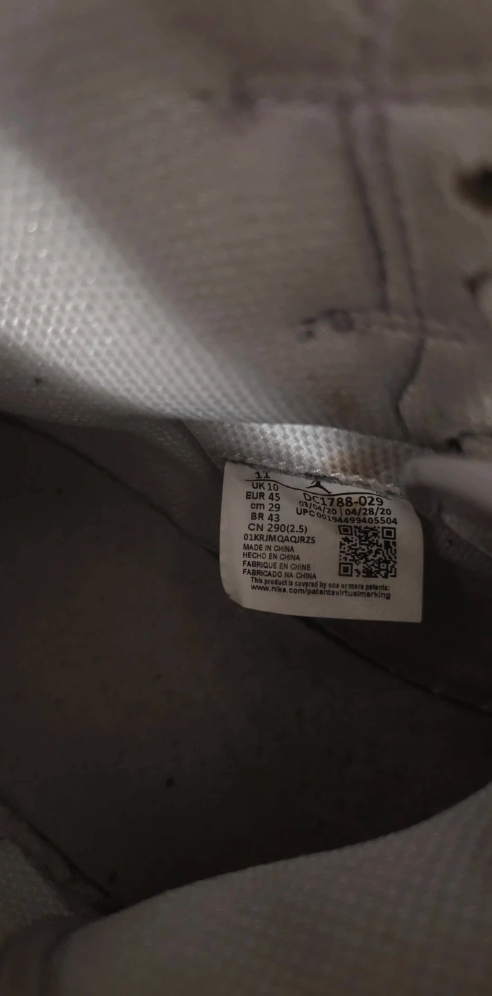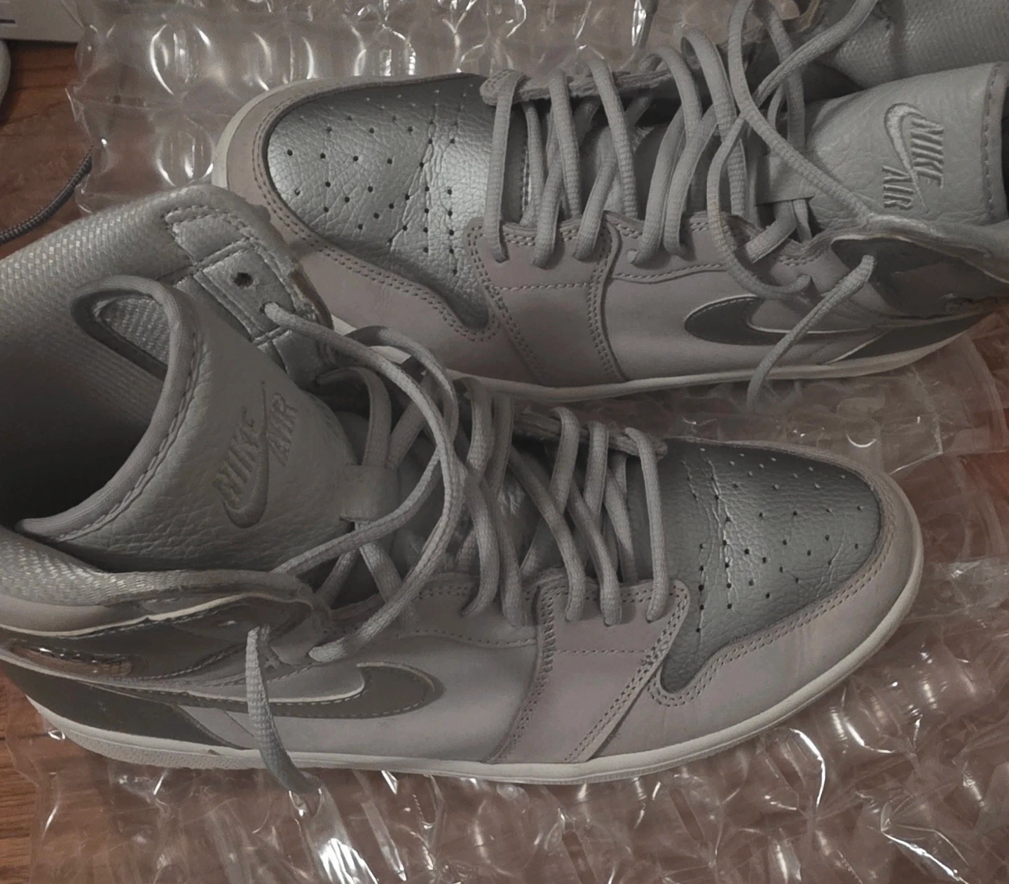 Air Jordan 1 Retro High OG sneakers in silver and white. Size 11 US, 10 UK, 45 EUR, 29 CM, 290(2.5) CN. Made in China. These are a great addition to any sneaker collection! Used need some cleaning doesn't come in a box selling these for a low price