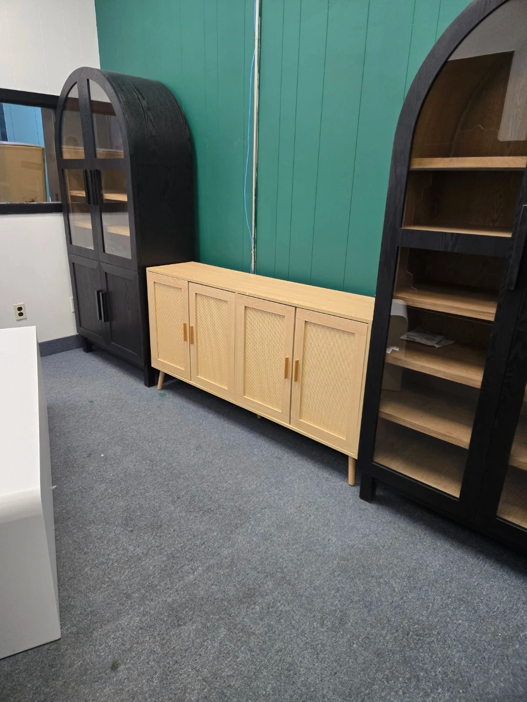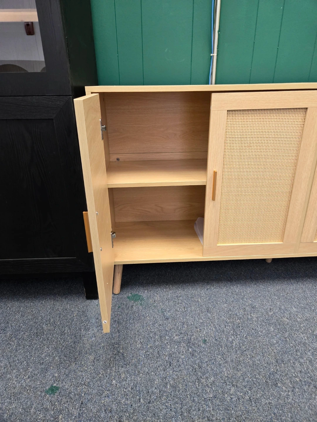 Light Wood 4-Door Sideboard with Rattan Detailing