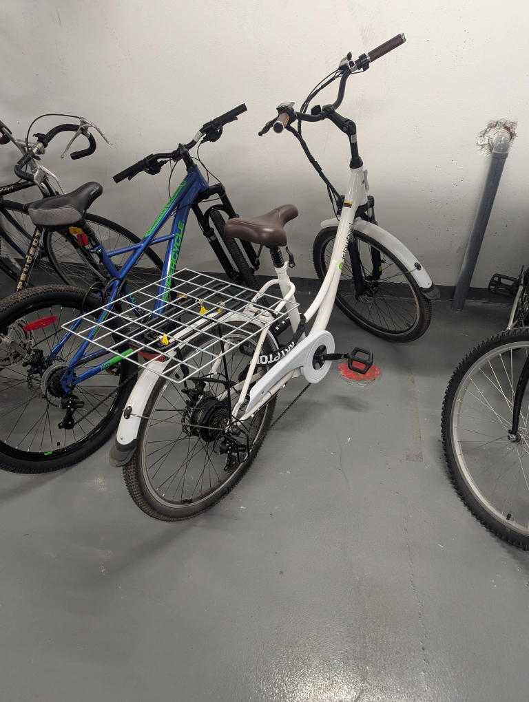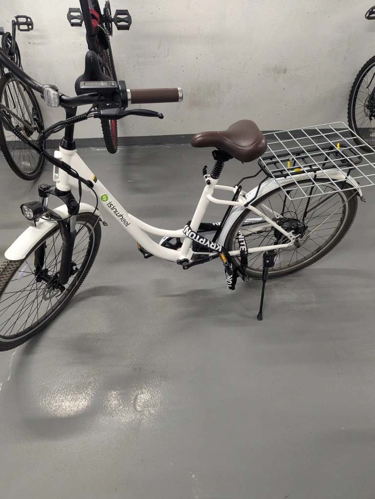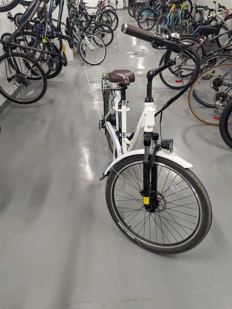 Selling an electric bike in white! It's in great condition and ready for some fun rides around town. Perfect for commuting or just enjoying the outdoors. Rode only twice. Selling it as I don't have any use of the bike.