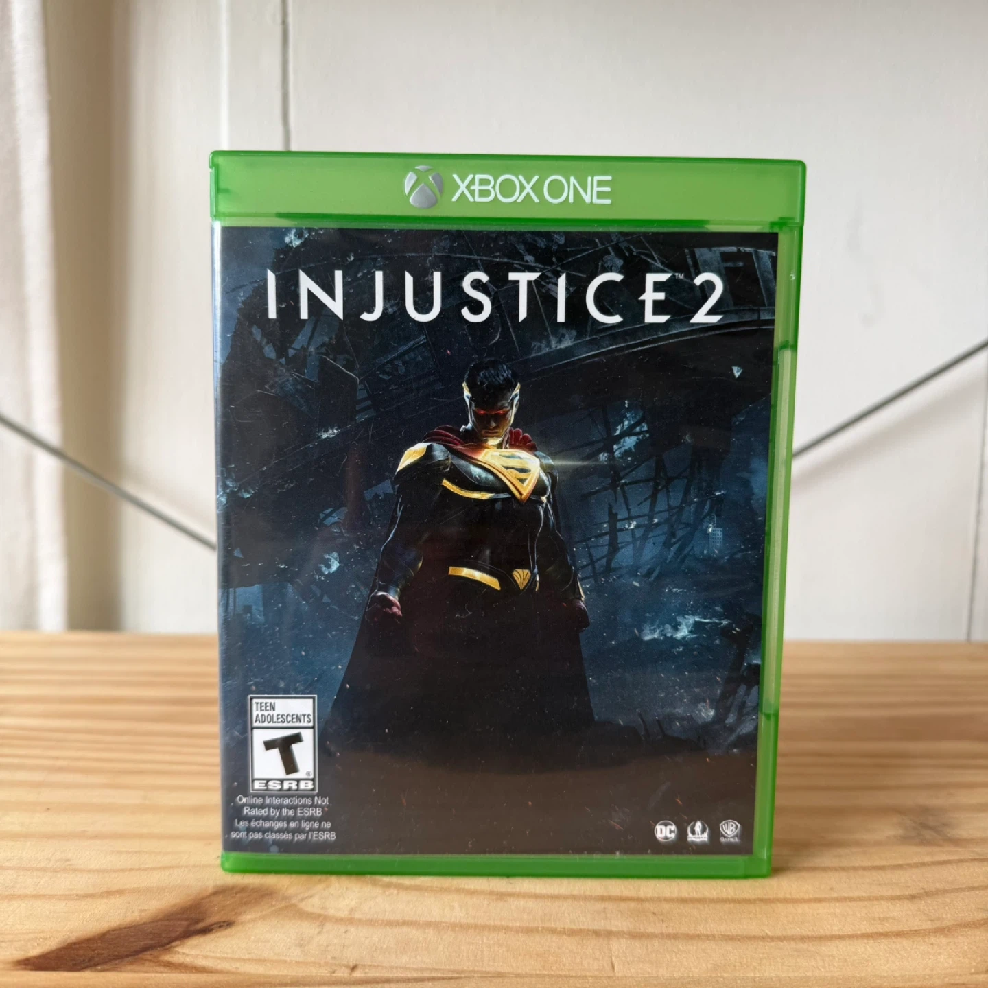 This is the Injustice 2 game for Xbox One. It includes the base game. It's rated T for Teen.
