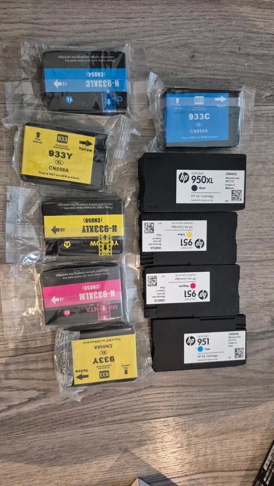 1000+Selling a collection of new HP ink cartridges. Includes: - HP 950XL Black - HP 951 Cyan, Magenta, Yellow - HP 933 Cyan, Magenta, Yellow All new and never used Each for 5$