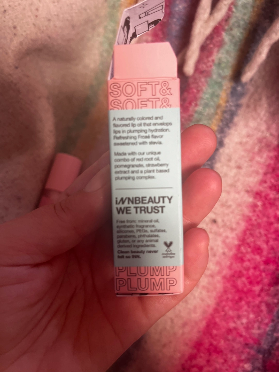 Lip Oil in the Frosé flavour! It's a naturally coloured and flavoured lip oil that envelops lips in plumping hydration, sweetened with stevia. It's made with red root oil, pomegranate, strawberry extract and a plant based plumping complex. It's also free from mineral oil, synthetic fragrance, sulfates, parabens, phthalates, gluten, or any other banned ingredients! Comes with the original packaging
