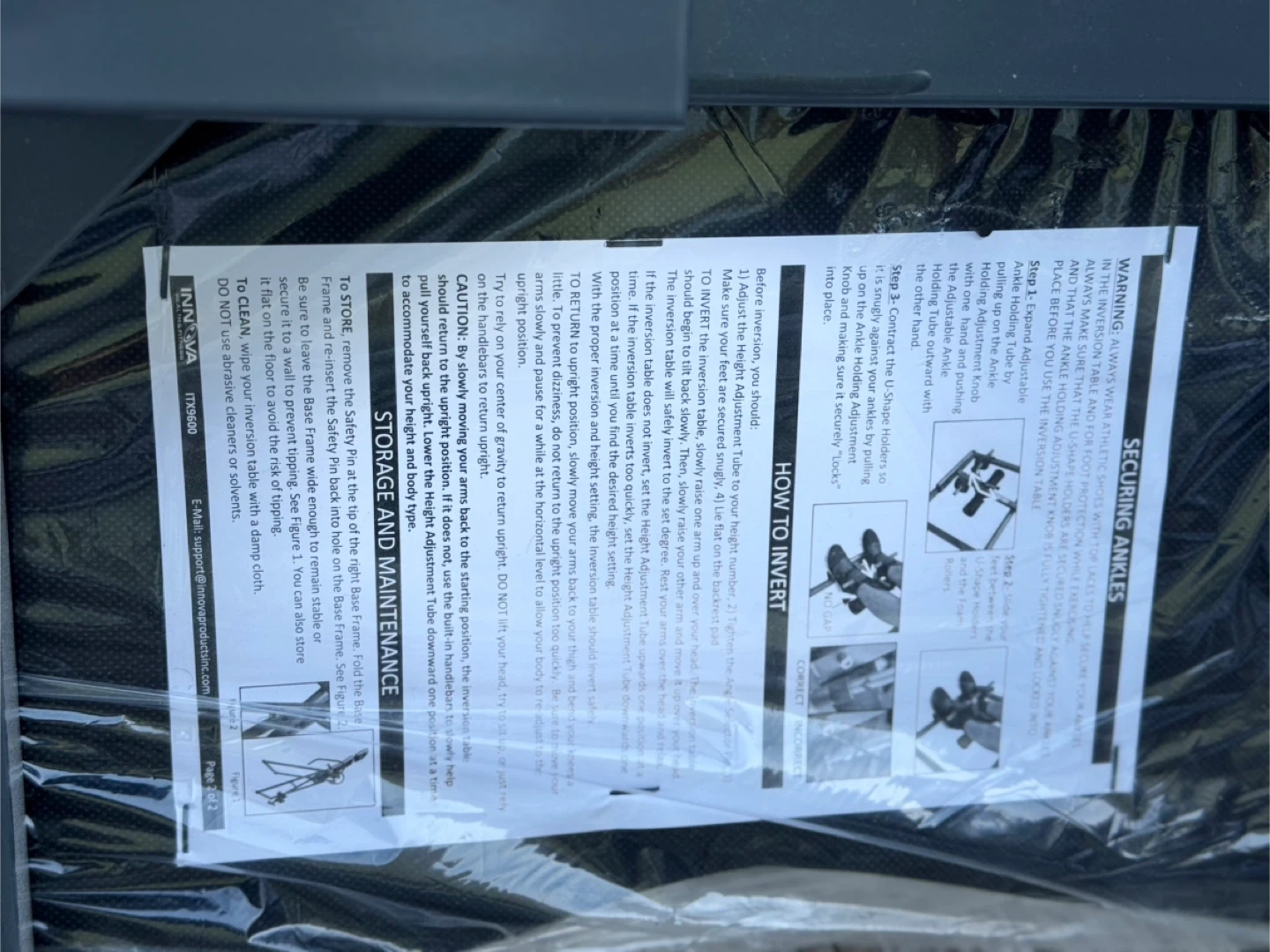10Selling a brand new Innova ITX9600 inversion table, still in its original packaging! This table provides comfort lumbar support and is designed to help with back pain relief and improved posture. It's a great addition to any home gym setup!