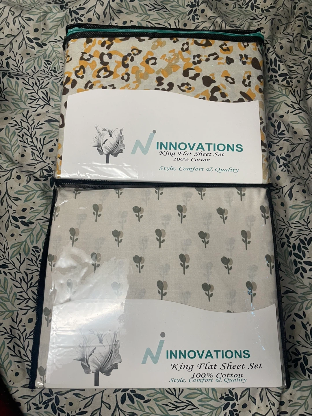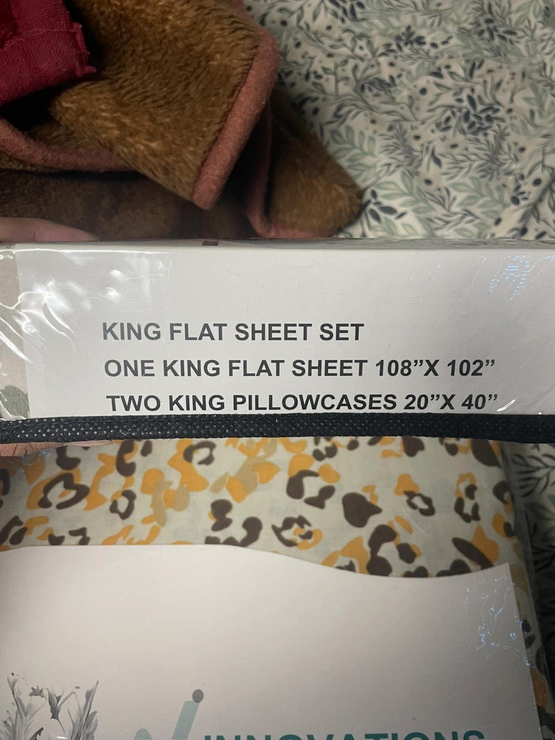 15I'm selling a brand new Innovations King Flat Sheet Set! Includes three pieces, flat sheet and two pillow cases (108" x 102") and two king pillowcases (20" x 40") It's 100% cotton for style, comfort and quality. 25 each