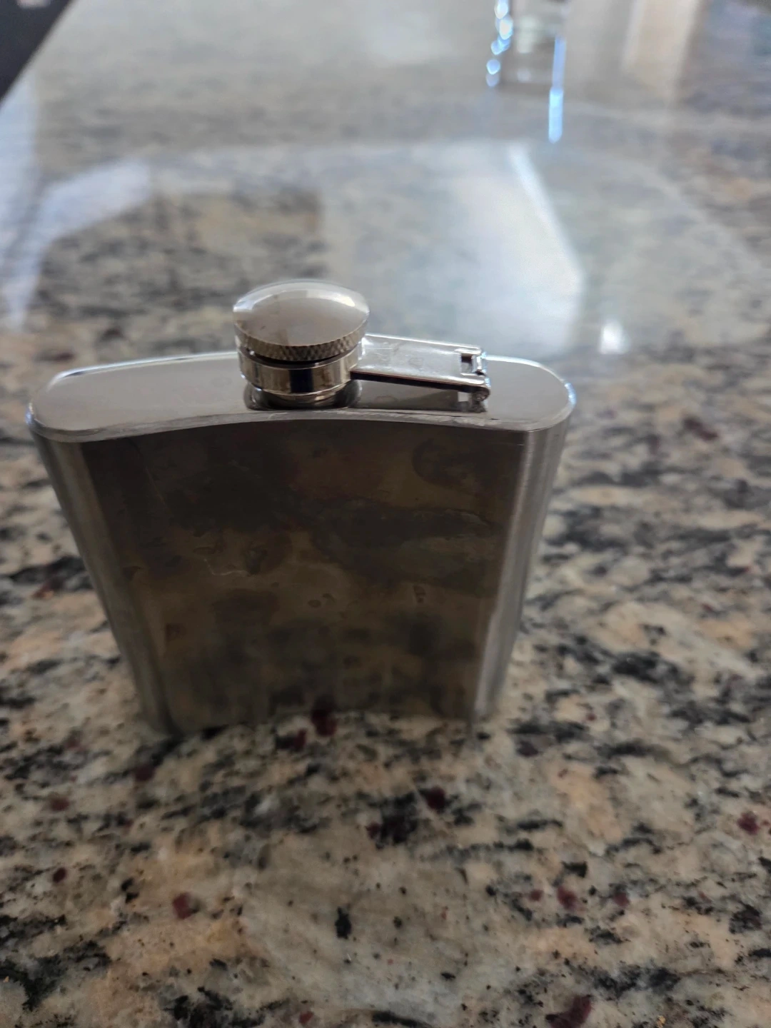 This is The Famous Grouse stainless steel hip flask. It's designed for carrying your favourite spirits. Perfect for taking on the go! Never Used