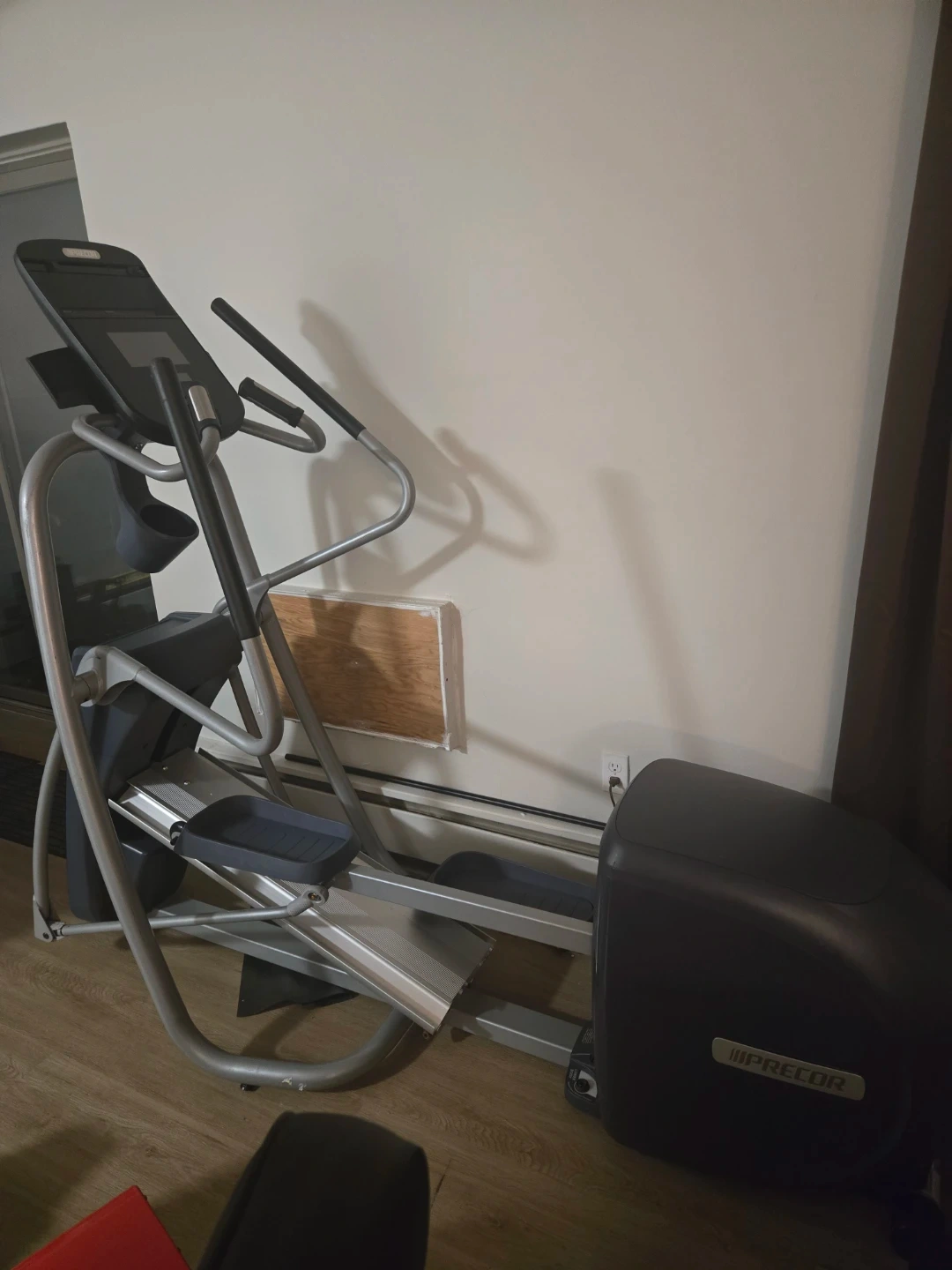 A PRECOR elliptical fitness machine for your home gym. It's designed for a full-body workout. Offers a smooth and effective cardio session.