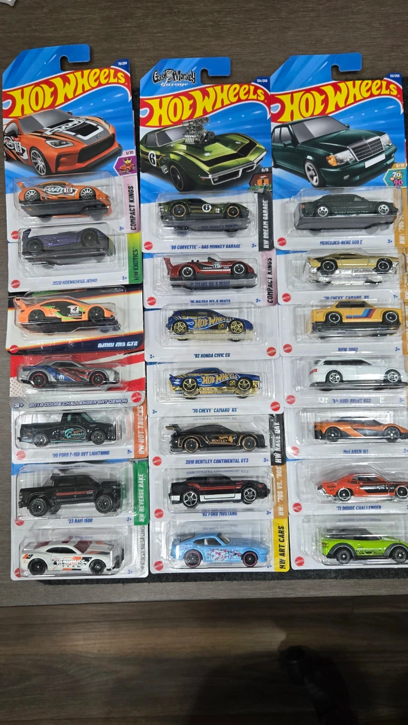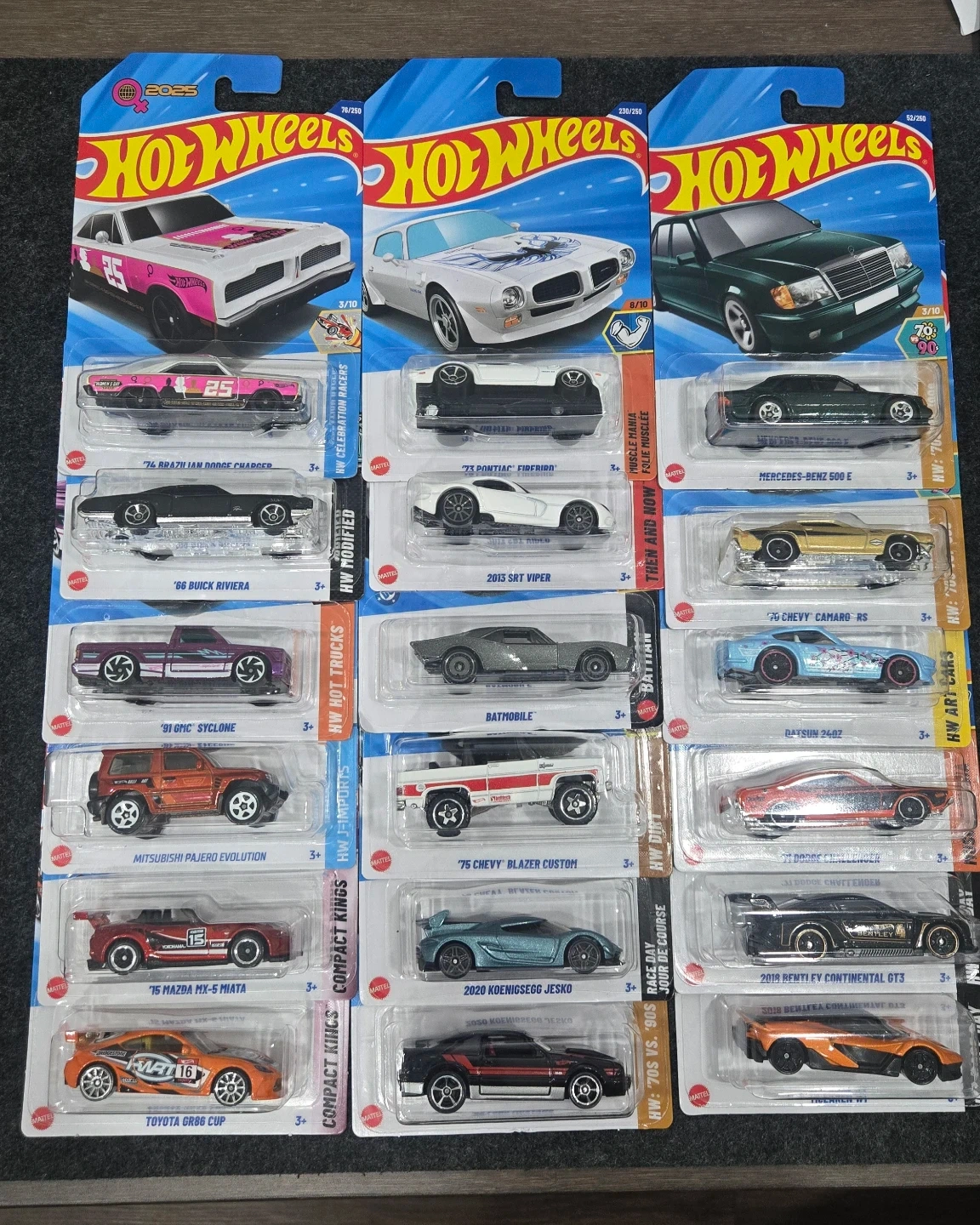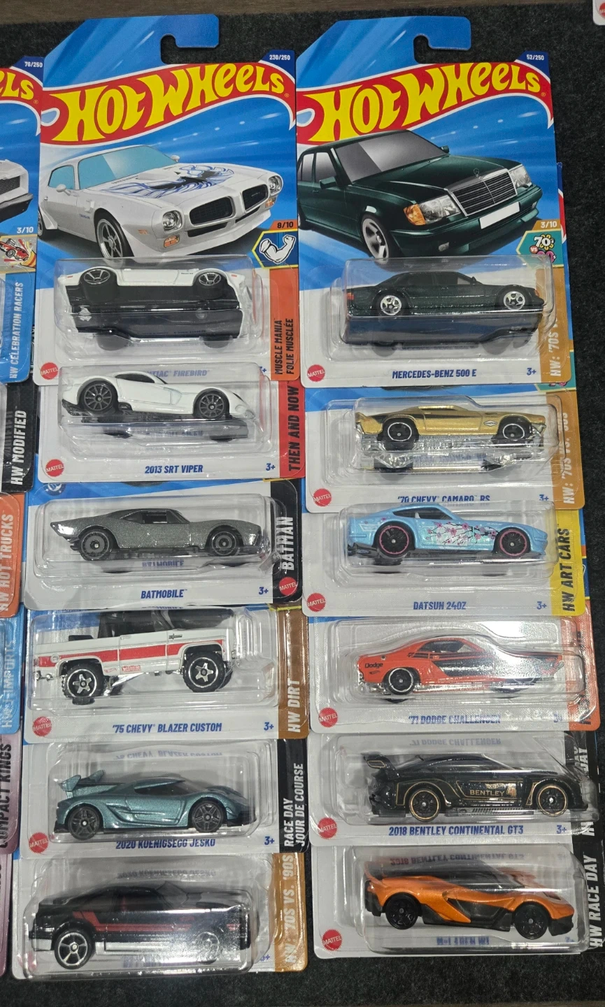 This is a collection of Hot Wheels die-cast cars. Various models and colours are included. Recommended for ages 3 and up.
