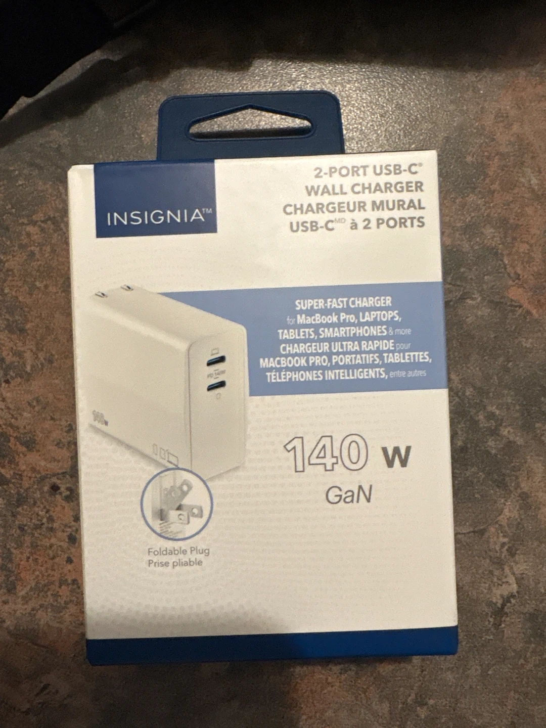 65Selling a brand new Insignia 2-Port USB-C Wall Charger. It's a super-fast charger for MacBook Pro, laptops, tablets, smartphones, and more. It features a foldable plug and delivers 140W GaN power